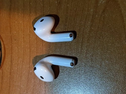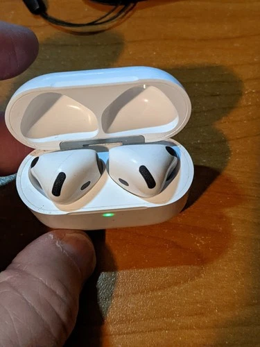 The AirPods 4 support USB-C charging, ensuring a convenient and efficient power-up. They come without a charger, allowing you to use your existing Apple charging accessories. With their compact and lightweight design, these AirPods are an ideal companion for your active lifestyle, easily slipping into your pocket or bag. Used, working, case has some scratches. WORKS PERFECTLY, NICE SOUNDING.