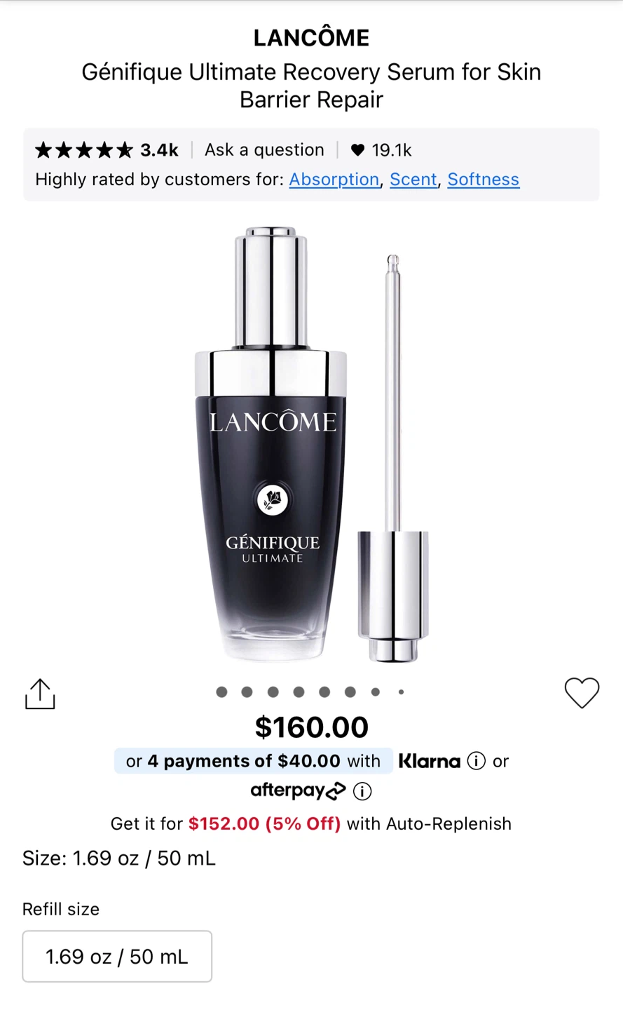 Selling Lancôme Génifique Ultimate Recovery Serum for Skin Barrier Repair in the 1.69 oz / 50 mL size. This serum is designed to strengthen your skin's moisture barrier and visibly reduce wrinkles and dark spots. It contains key ingredients like Beta Glucan, Hyaluronic Acid, and Licorice Extract to moisturize, hydrate, and soothe your skin. Originally bought for $160.00