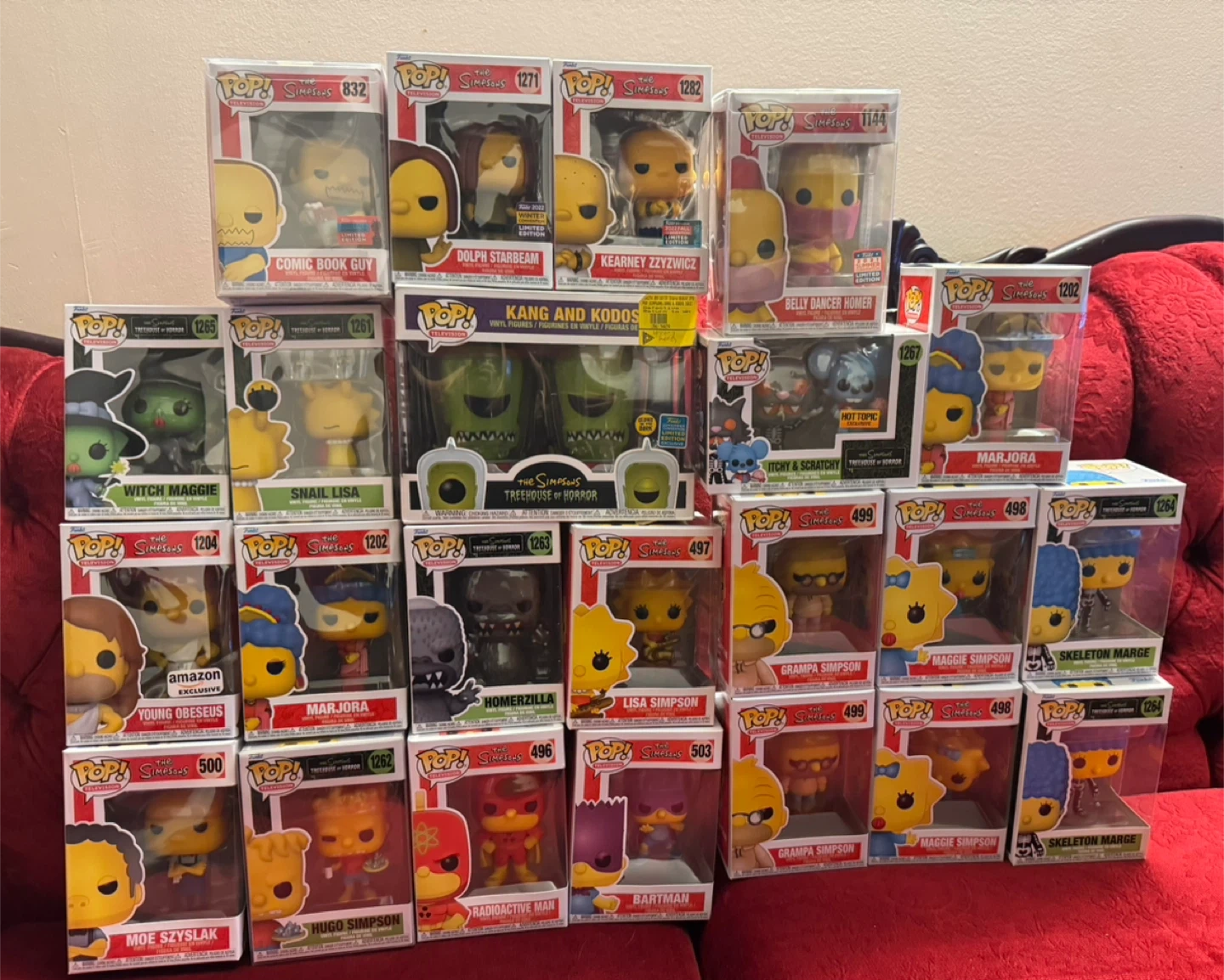 Selling a collection of Funko Pop! figures from The Simpsons. All figures are brand new and still in their original boxes! Great for collectors or fans of the show. Each figure is individually boxed and ready to be displayed.