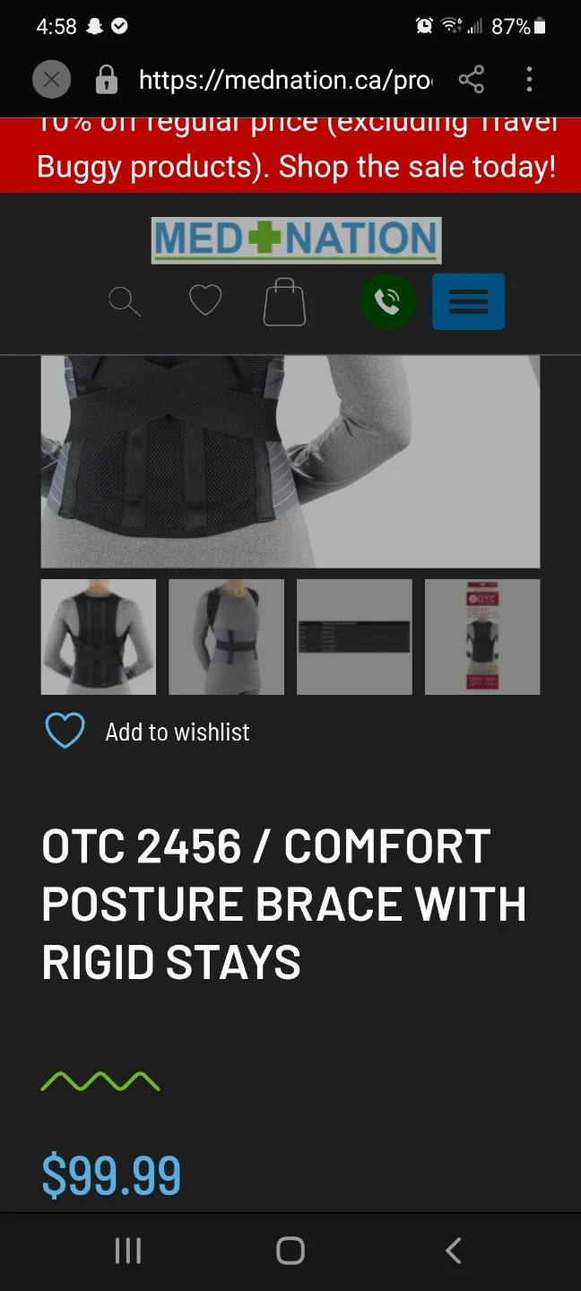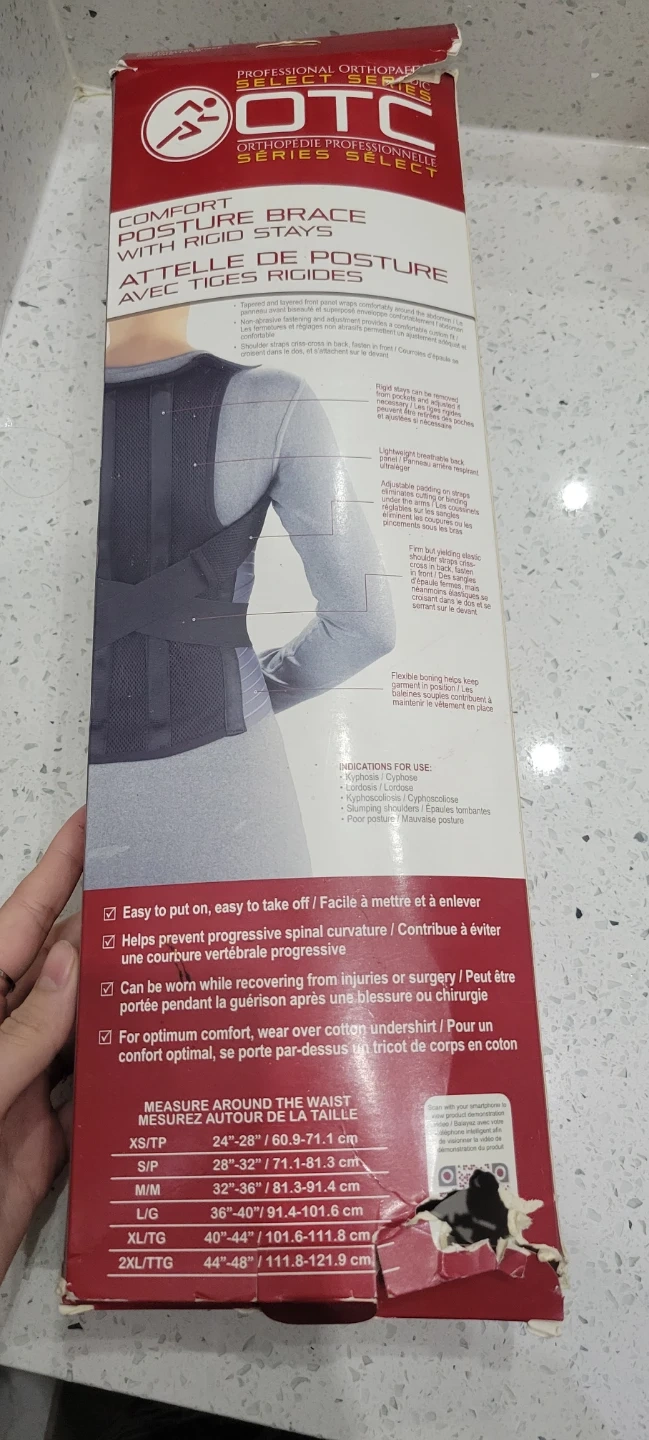 I'm selling an OTC Comfort Posture Brace with Rigid Stays, model 2456. It comes in its original box.