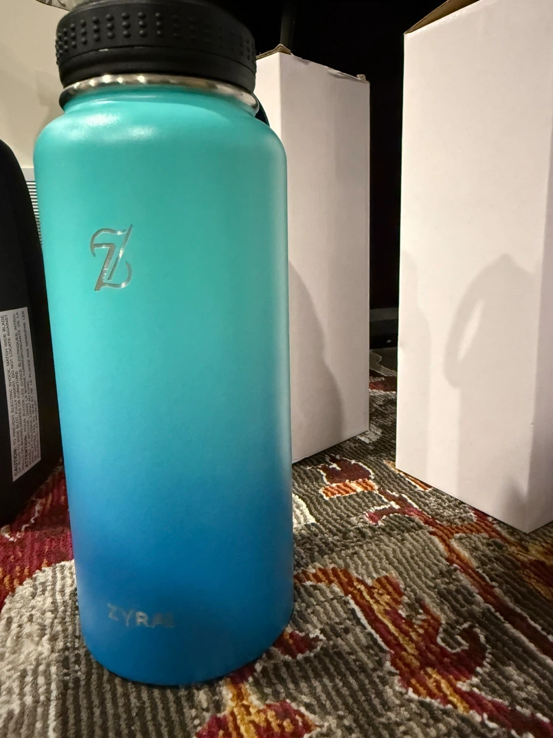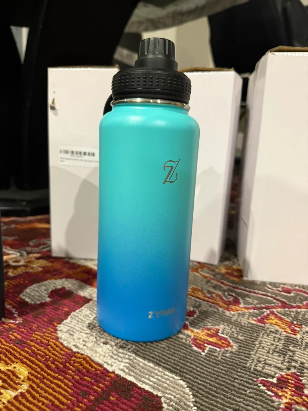 I'm selling a Zyral water bottle in a beautiful blue ombre colour. It's in great condition and ready to keep you hydrated on the go! The box is included too