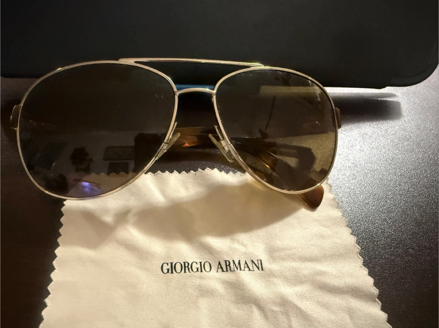 Selling a pair of Giorgio Armani aviator sunglasses. They come with their original case and a cleaning cloth. A stylish accessory to complete your look!