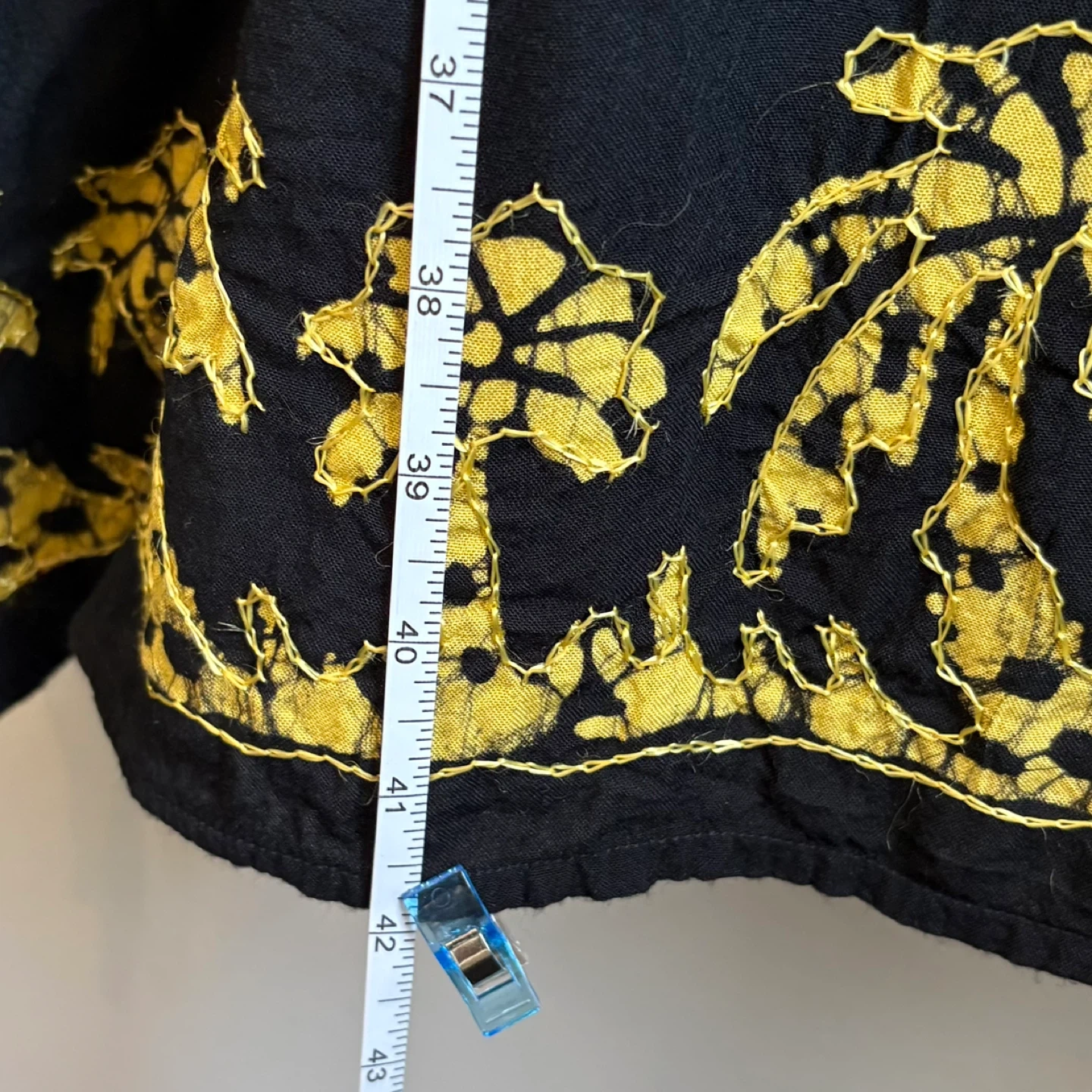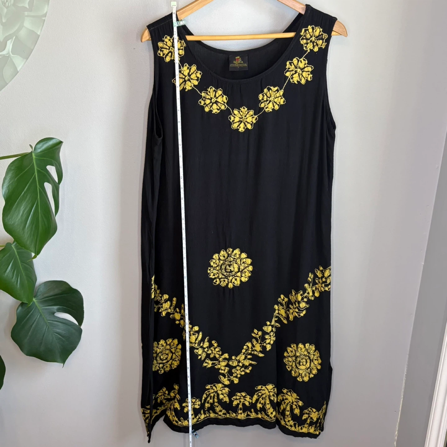 Rima Black Tropical Batik Printed Embroidered Shift Dress Size L