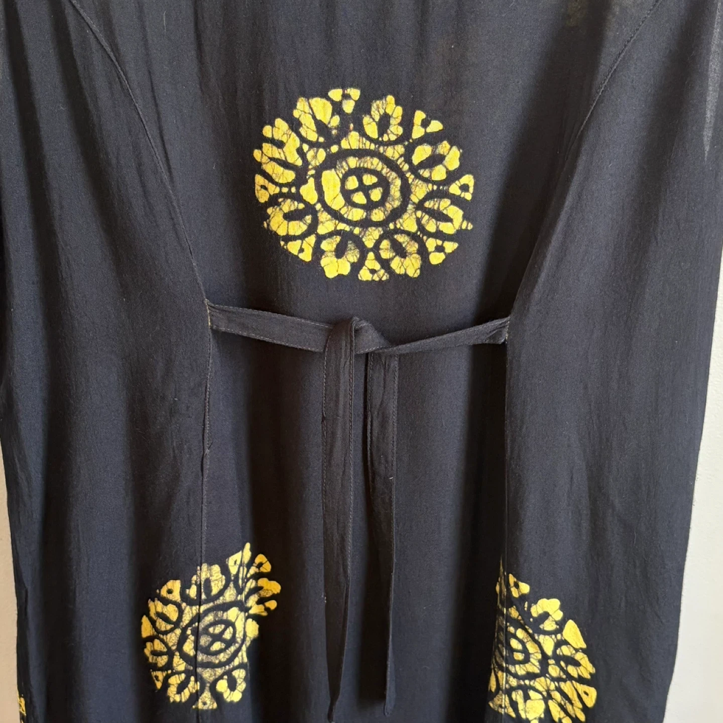 Rima dress, batik print dress, embroidered sun dress, tropical vacation wear, beach cover up, yellow and black dress, bohemian shift dress, viscose summer dress, floral embroidery dress, Mexican resort wear