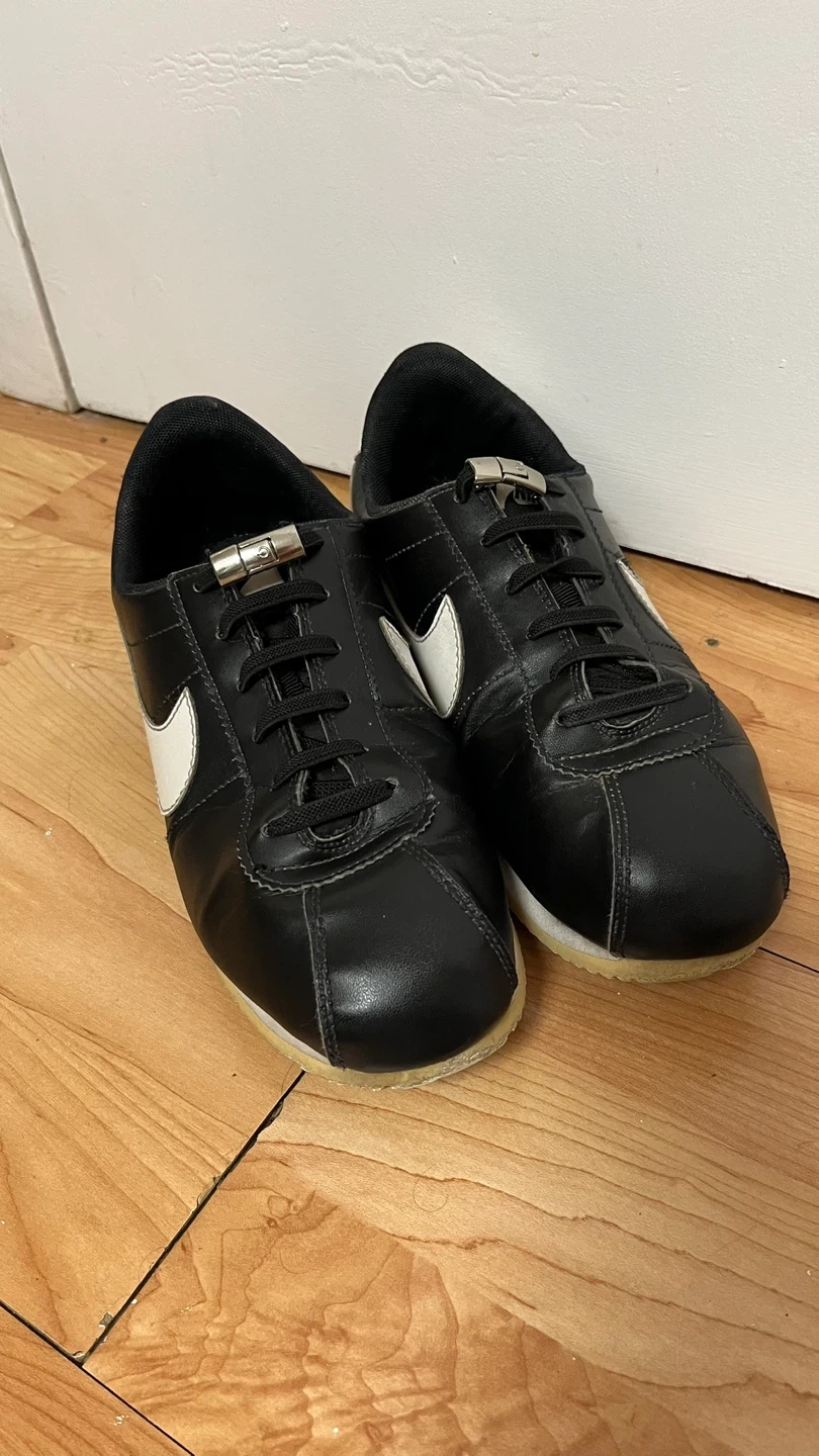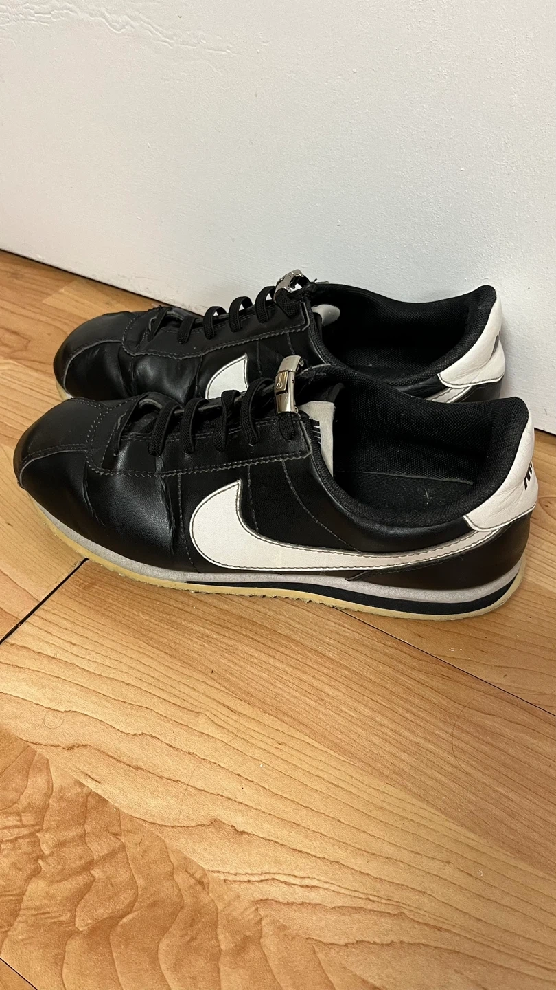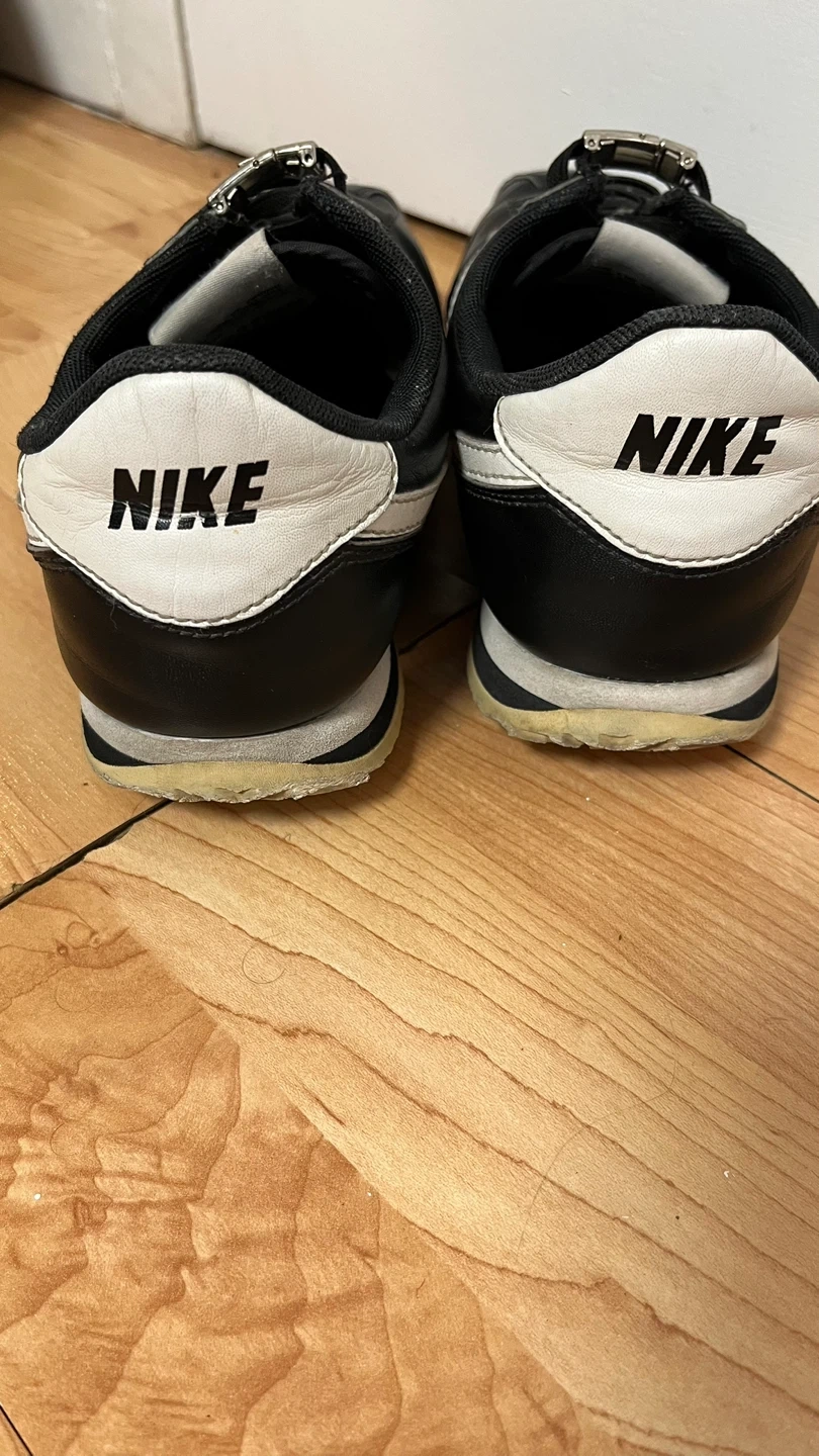 Selling a pair of Nike Cortez sneakers in black leather! They're in good condition and still have lots of life left. Classic style that goes with everything