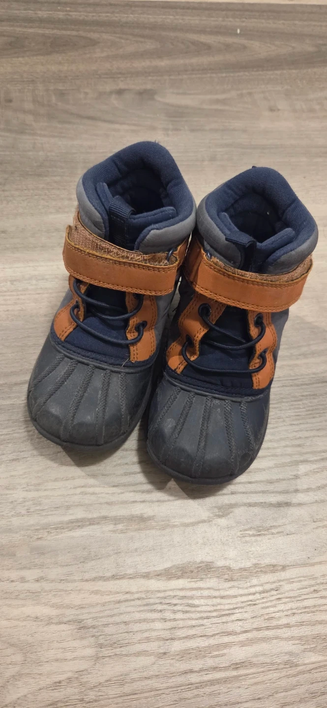 Selling a pair of Stonz winter boots in size 8. They are blue and brown, perfect for keeping little feet warm and dry this winter! They're in good condition and ready for some snowy adventures