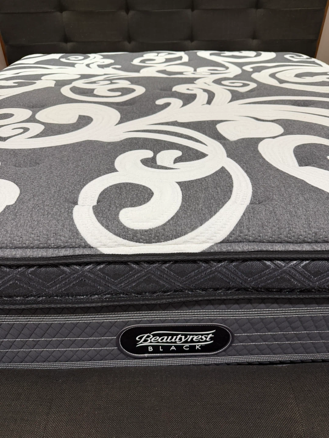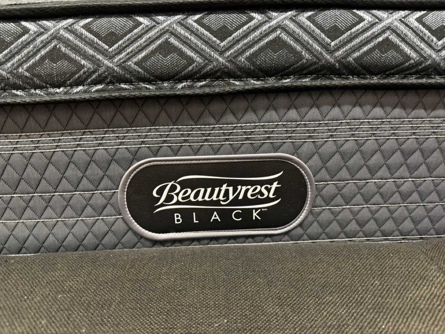 Selling a King size Beautyrest Black mattress. It's spotless in good condition and ready for a new home. The mattress features a stylish grey and white patterned top. It was always used with a mattress protector.
