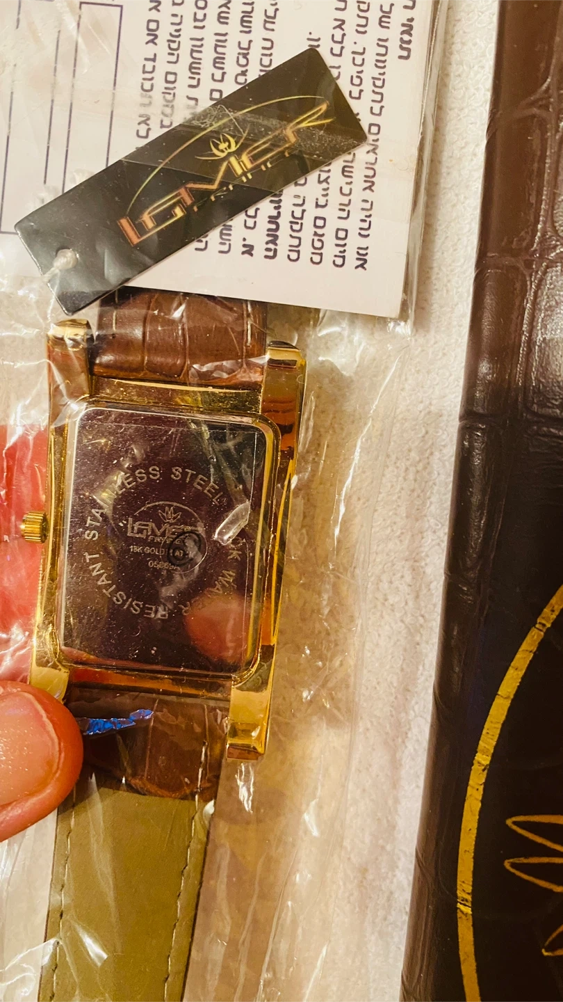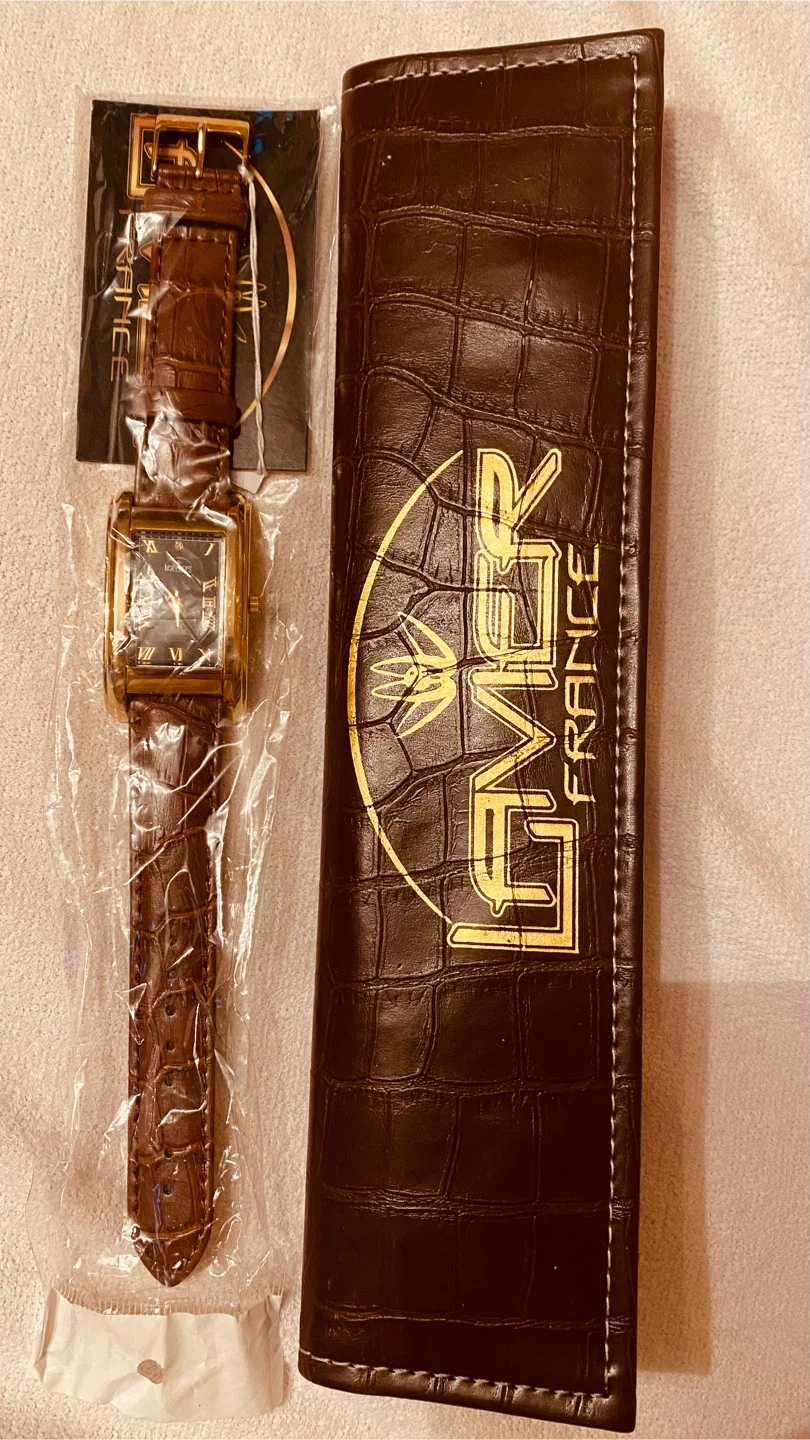 I'm selling a brand new Lgvier France watch! The watch features a brown leather strap and comes with its original box. It's never been worn and is in perfect condition