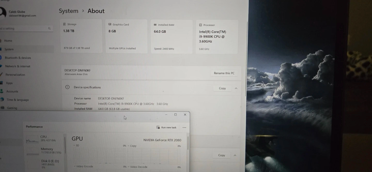 - Processor: Intel Core i9-9900K @ 3.60 GHz