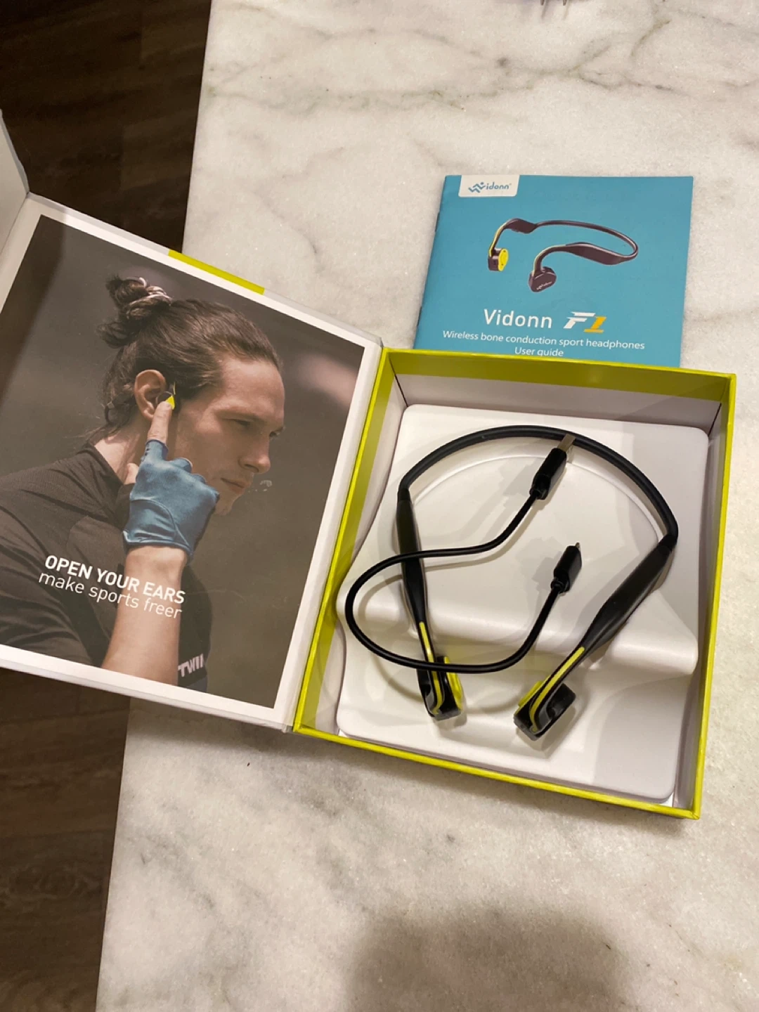 Selling a brand new pair of Vidonn bone conduction wireless headphones! They come in the original box and include all components. These headphones are designed to keep your ears open, making sports freer. Perfect for anyone looking for a comfortable and safe listening experience during workouts or outdoor activities