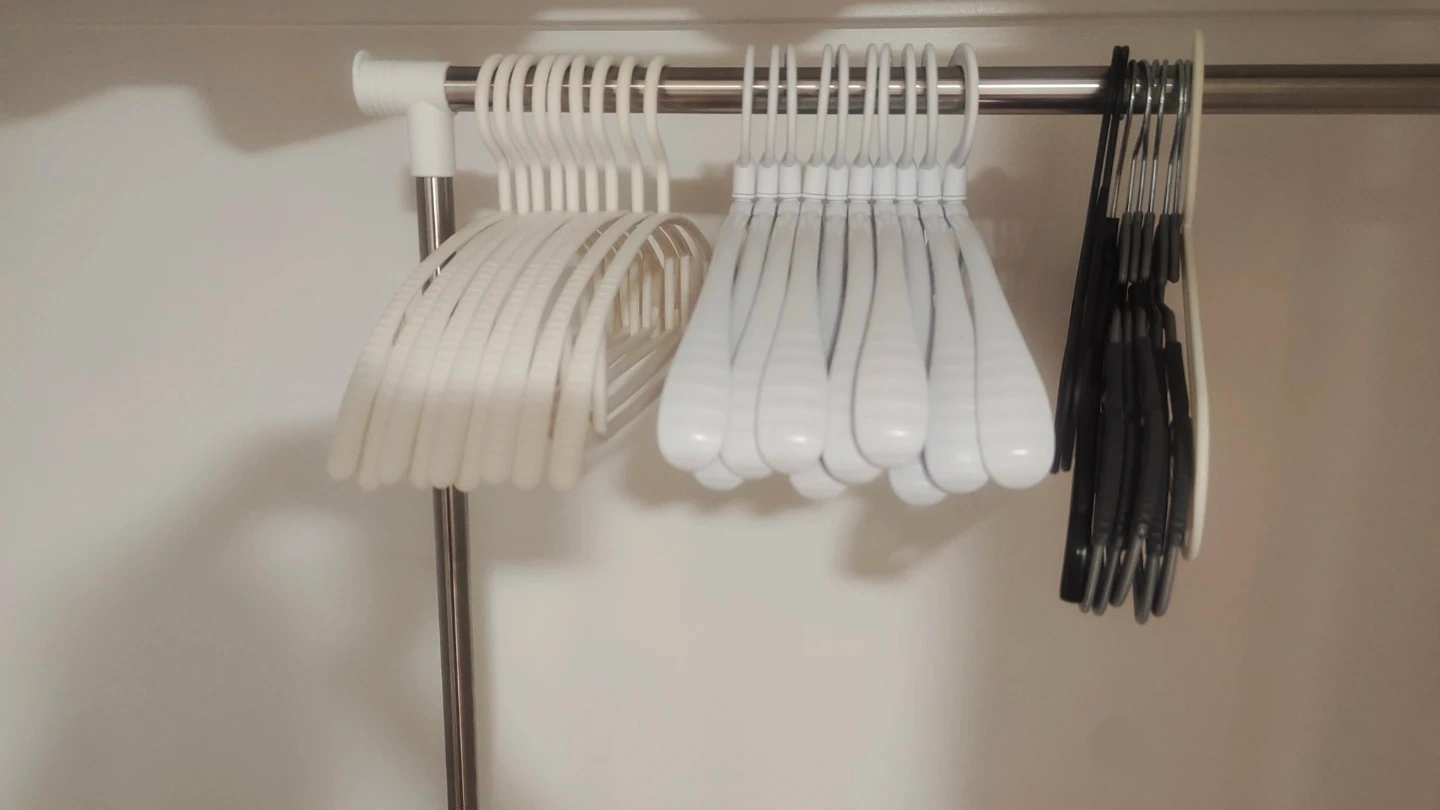 Selling a set of clothes hangers in white and black colours. They're in great shape and ready to organize your closet!