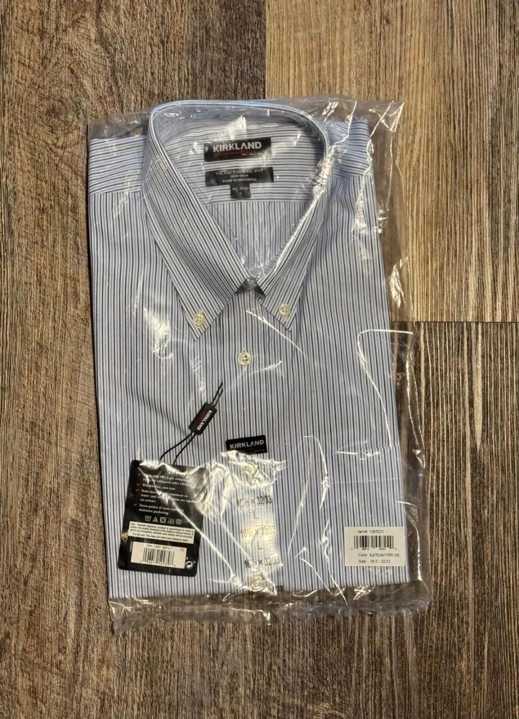 I'm selling a brand new Kirkland Traditional Fit shirt, still in its original packaging! The size is 16.5-32/33 and the colour is blue/white stripe