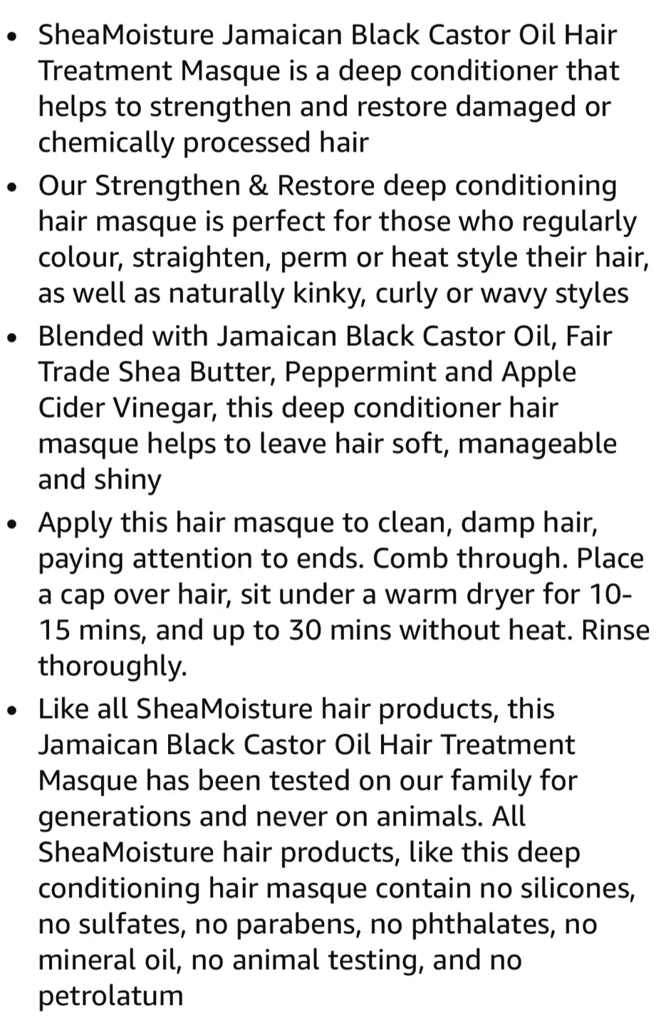 SheaMoisture Jamaican Black Castor Oil Treatment Masque – New