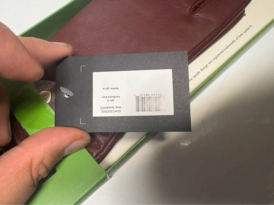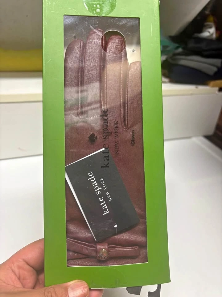 Brand new, never worn Kate Spade New York women’s leather gloves, size Small, in a beautiful rich burgundy/brown tone with the signature Kate Spade spade detail. Original packaging included.