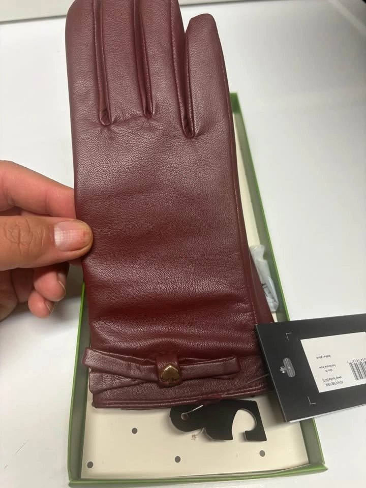 Kate Spade Leather Gloves Burgundy/Brown - Women’s Small