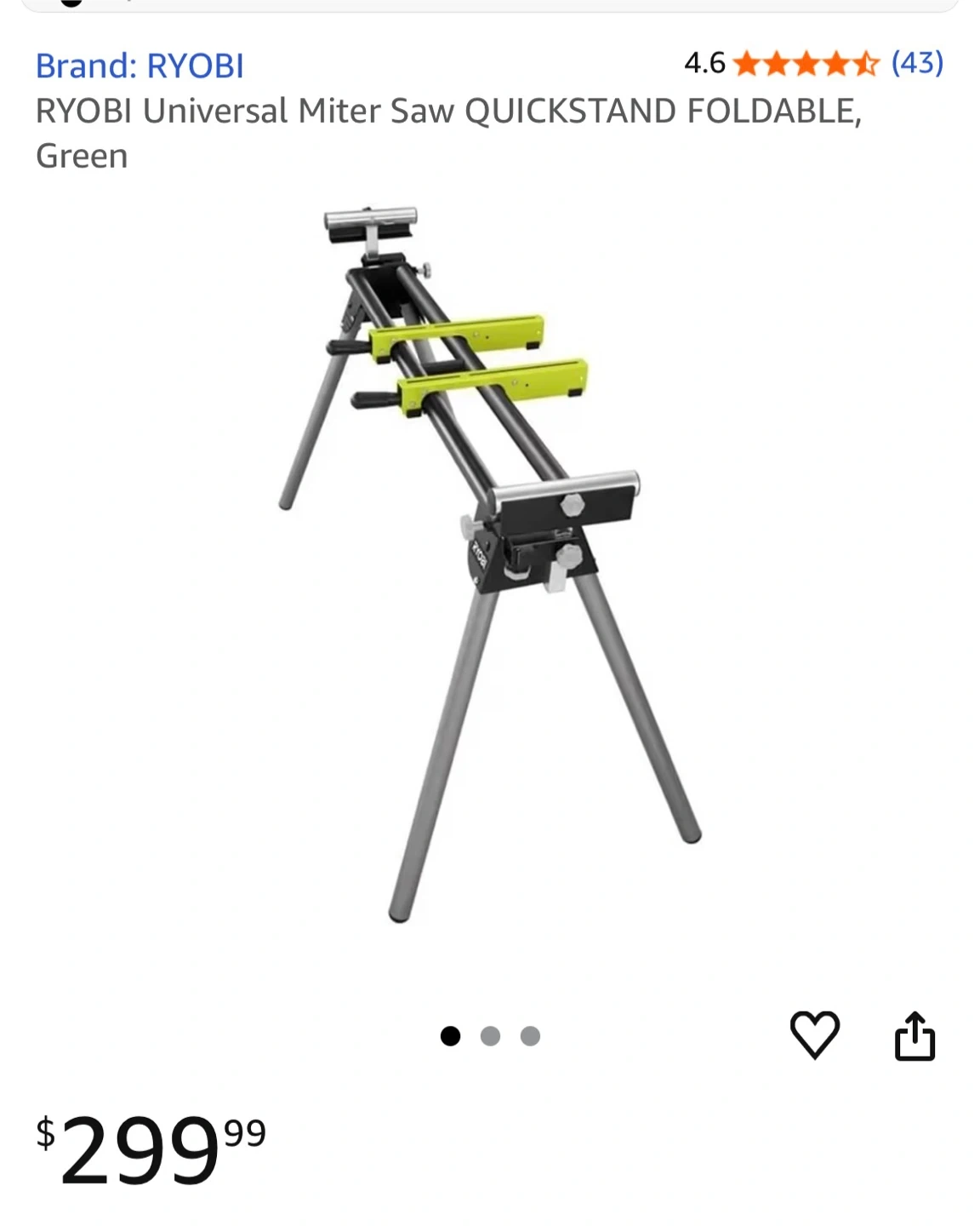 Hi! We’re selling this Ryobi universal folding mitre saw quick stand because we’re downsizing.