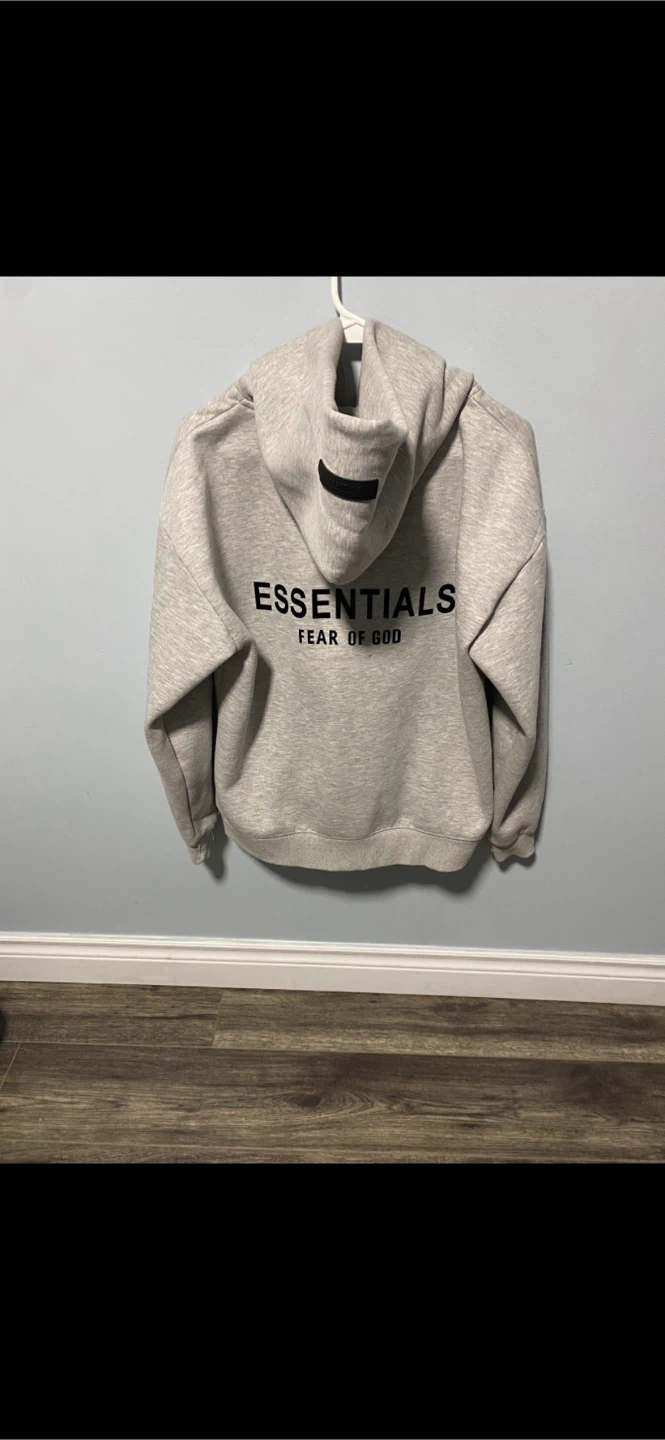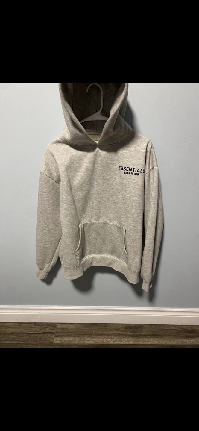 Selling an Essentials Fear of God hoodie. It's a stylish and comfortable piece, perfect for everyday wear. The hoodie features the Essentials logo on the front and back. It's in great condition and ready for a new owner!