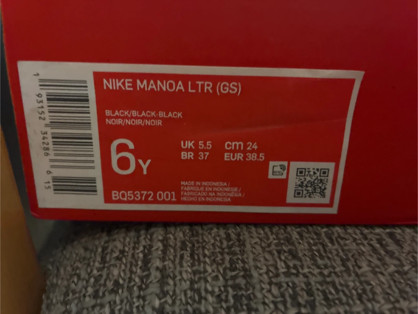 Selling a pair of Nike Manoa LTR (GS) in black. Brand New in the box The size is Men 6 Women 7.5 Perfect for everyday wear!