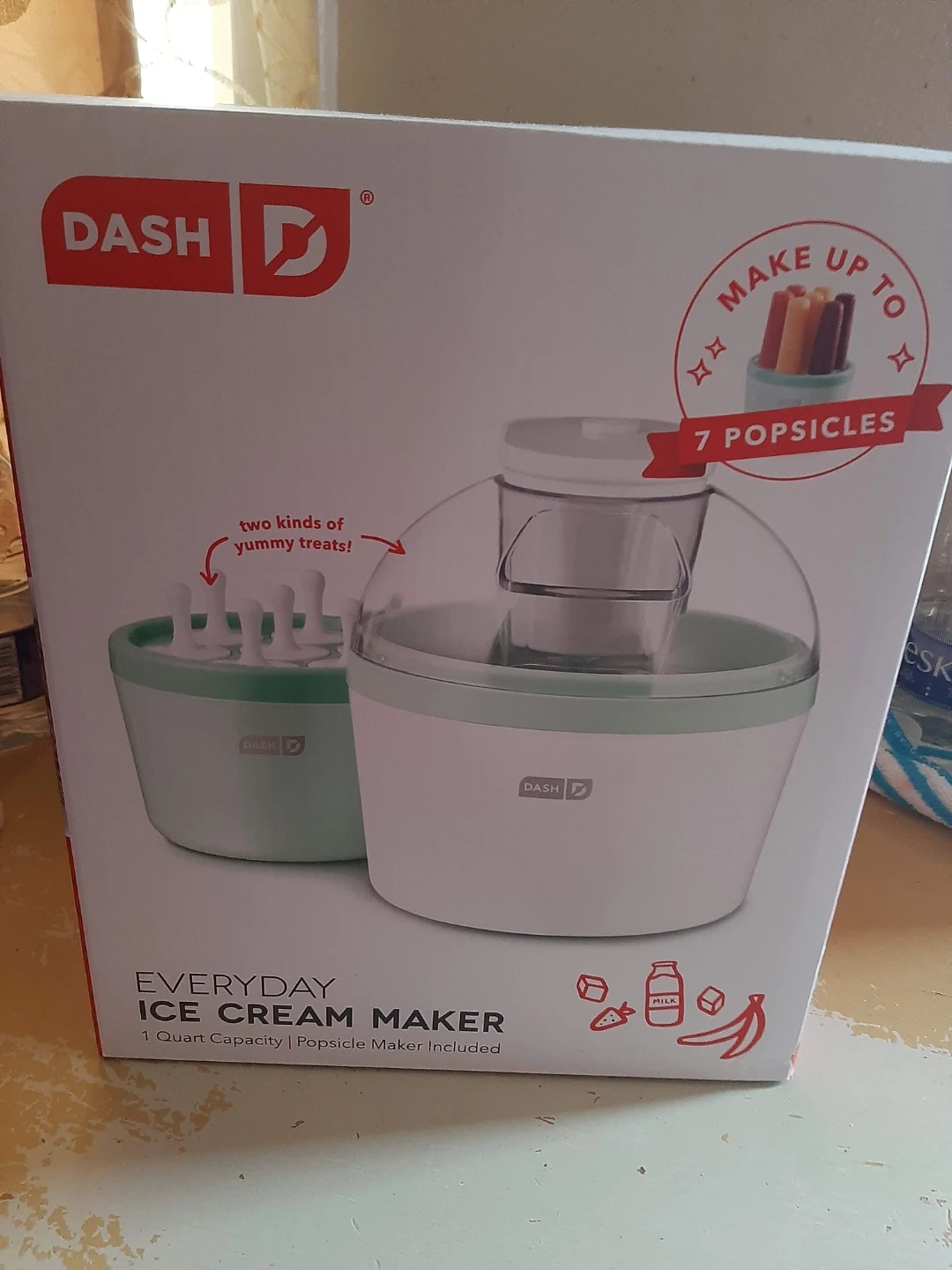 I'm selling a brand new Dash Everyday Ice Cream Maker! It's still in its original packaging and has never been used. It can make up to 7 popsicles and can make two kinds of yummy treats! It has a 1 Quart Capacity and includes a Popsicle Maker!