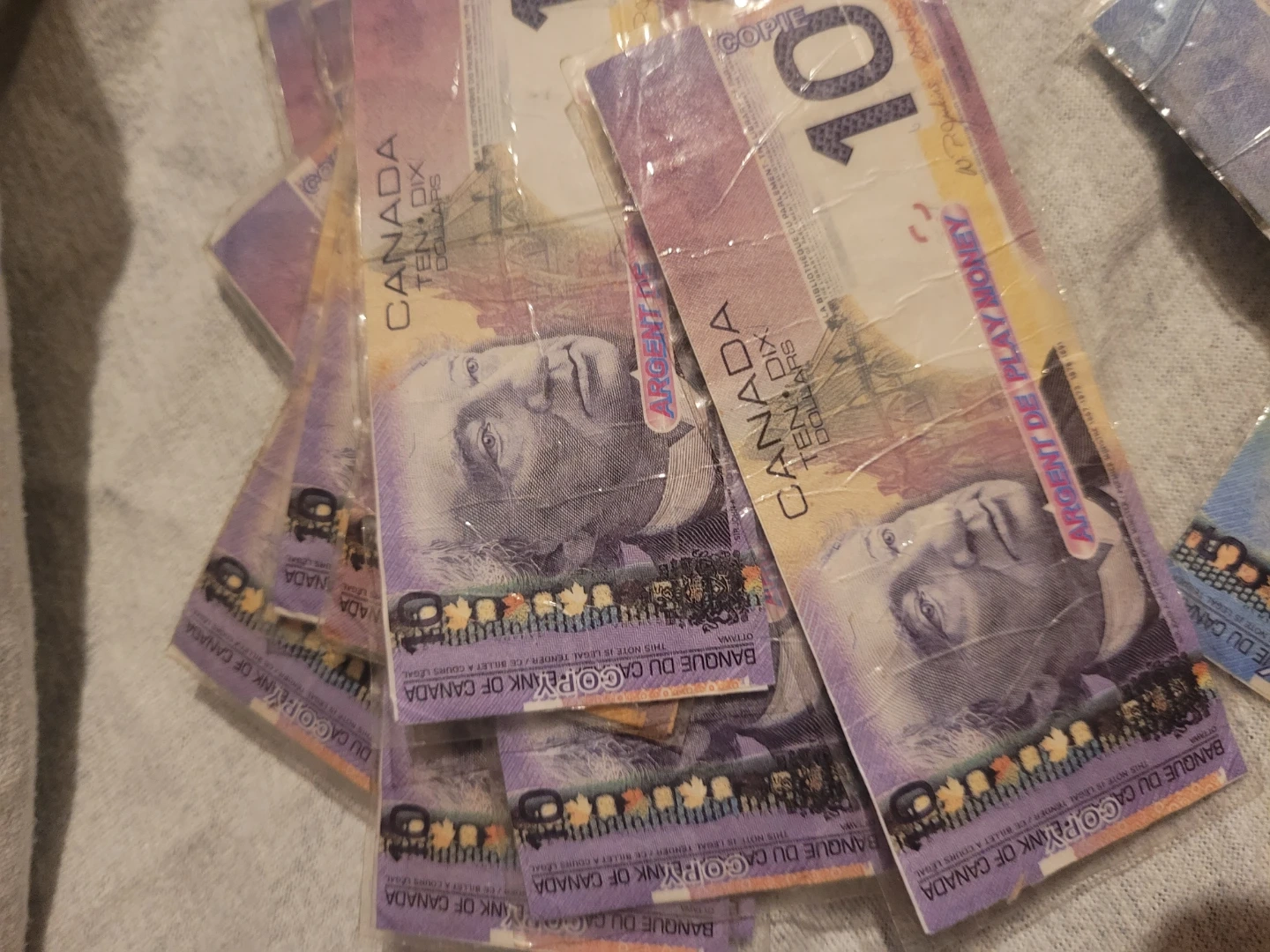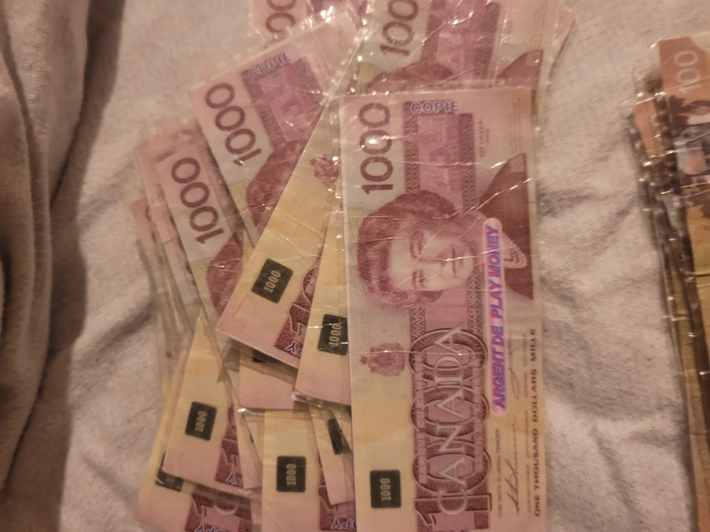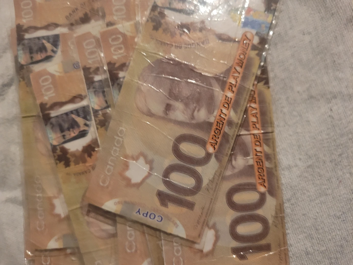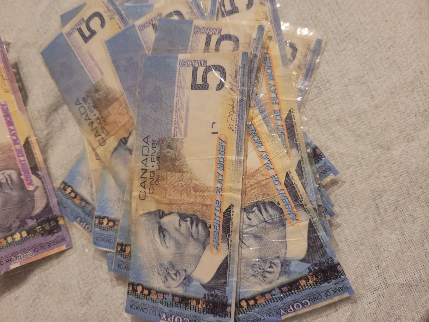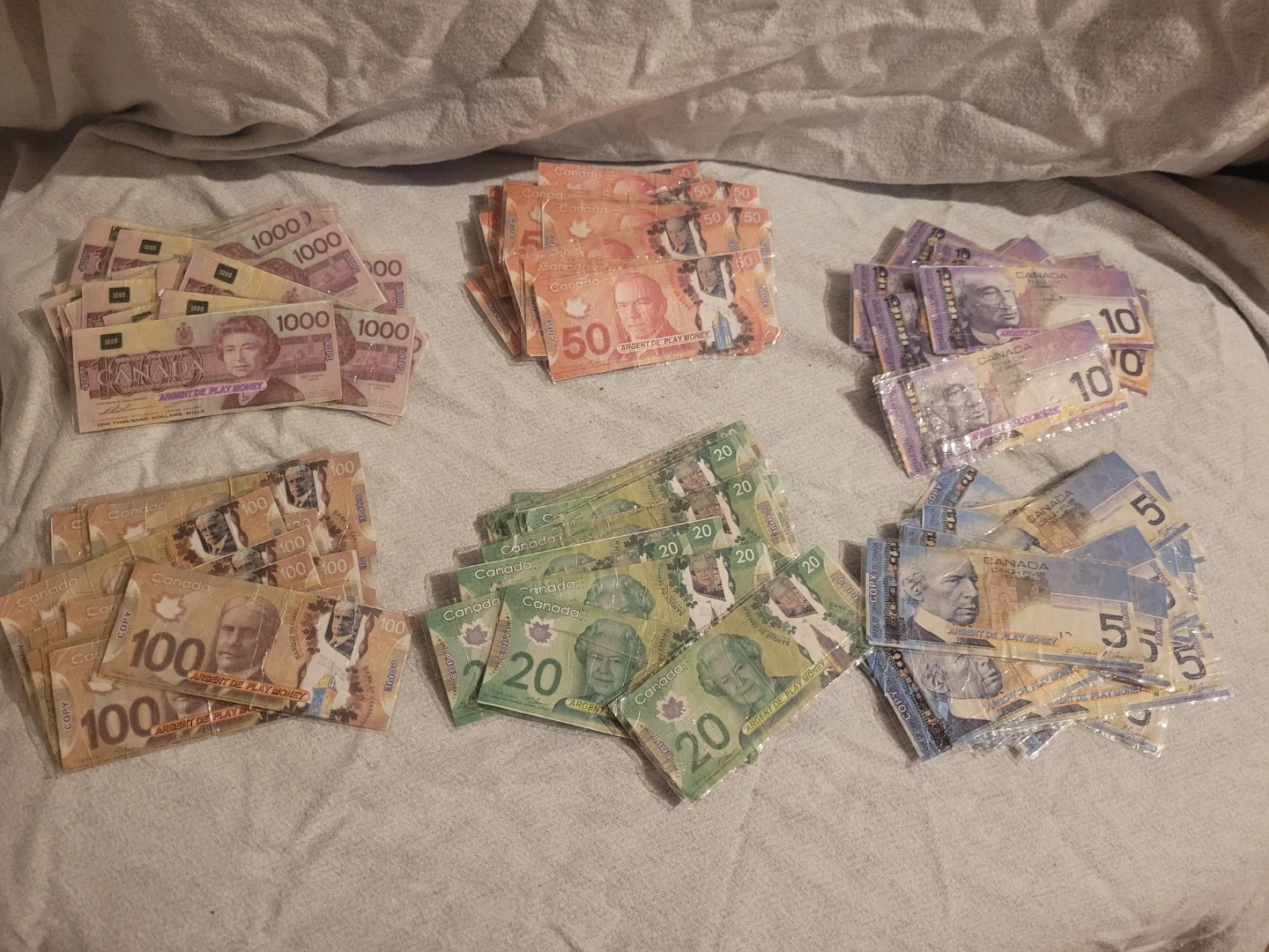 This play money set includes a variety of denominations, perfect for teaching kids about currency or for use in games and pretend play. The set includes $5, $10, $20, $50, $100, and $1000 bills. This is a used set of play money. I laminated my self to protect and help last. Also allows easy cleaning. A favorite for many ages used in alot of play. Reason i had many treasure boxes.