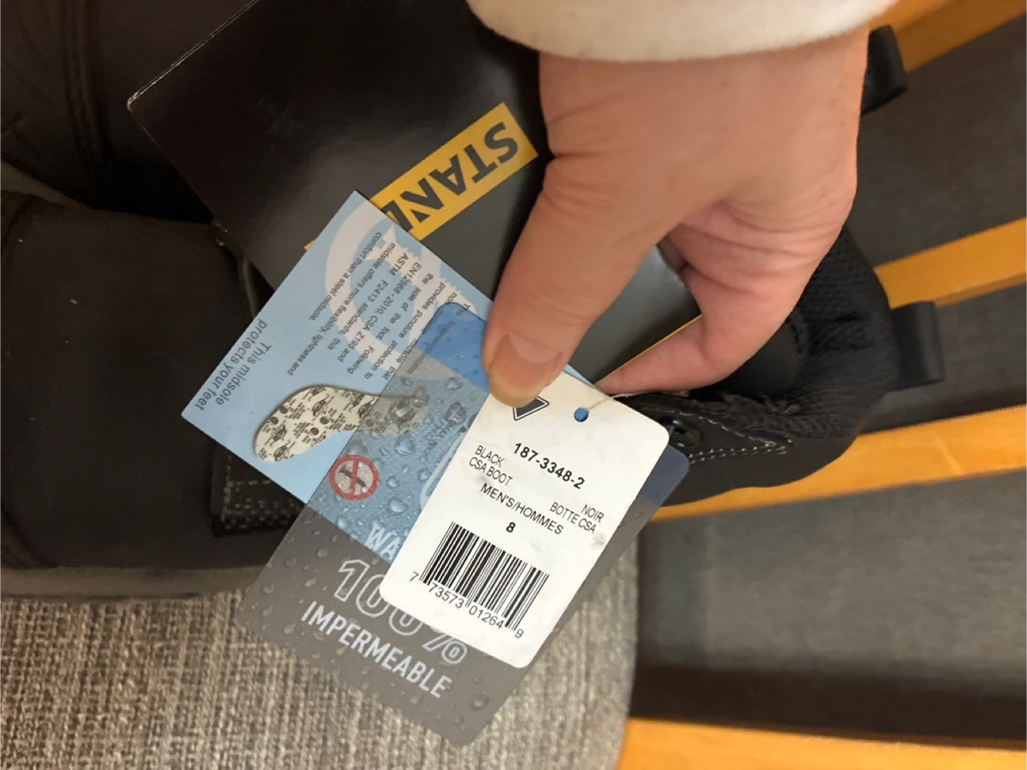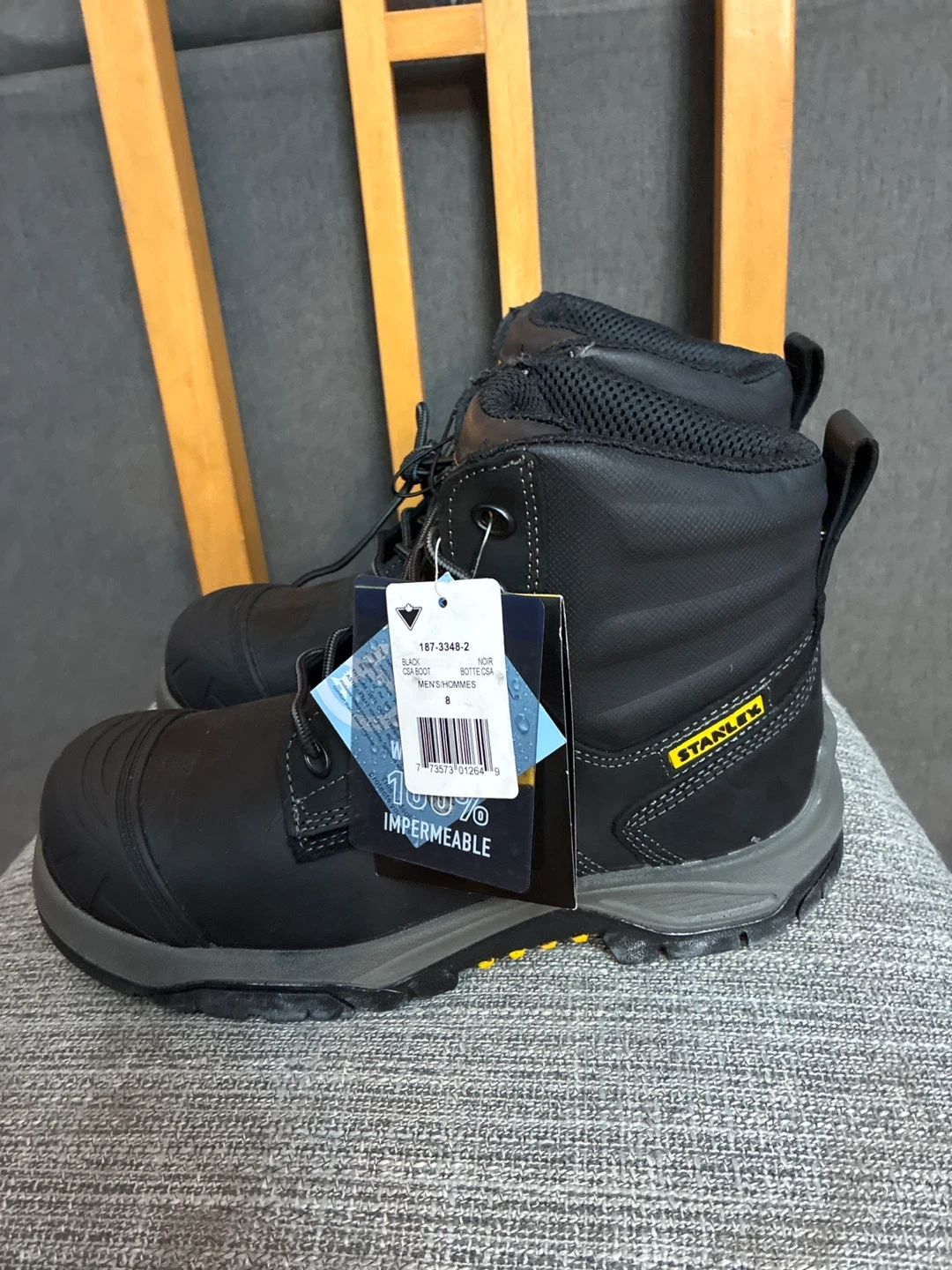 Selling a pair of Stanley black CSA Composite Toe work boots in men's size 8 Women’s size 9.5 These boots are 100% waterproof and feature 3M Thinsulate insulation to keep your feet warm and dry. Great for any work environment!