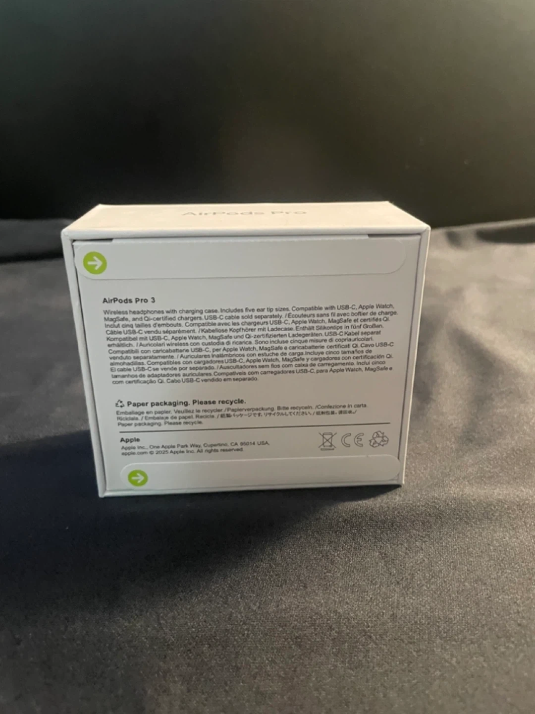 Selling a brand new pair of Apple AirPods Pro 3! Still in the original box and packaging, never opened. Includes five ear tip sizes and charging case. Compatible with USB-C, Apple Watch, MagSafe, and Qi-certified chargers