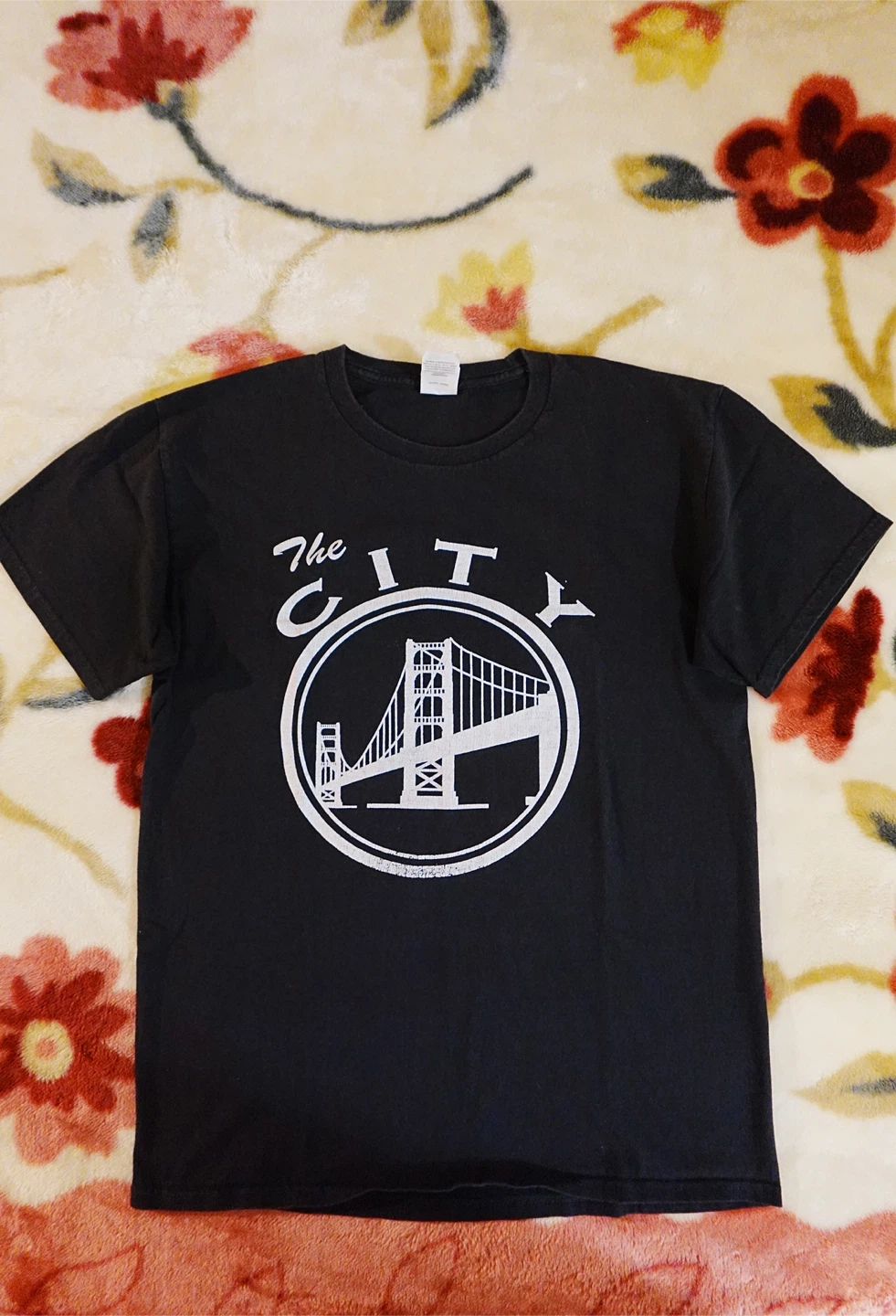 Selling a black t-shirt with “The City”. It's in good condition and ready for a new owner!