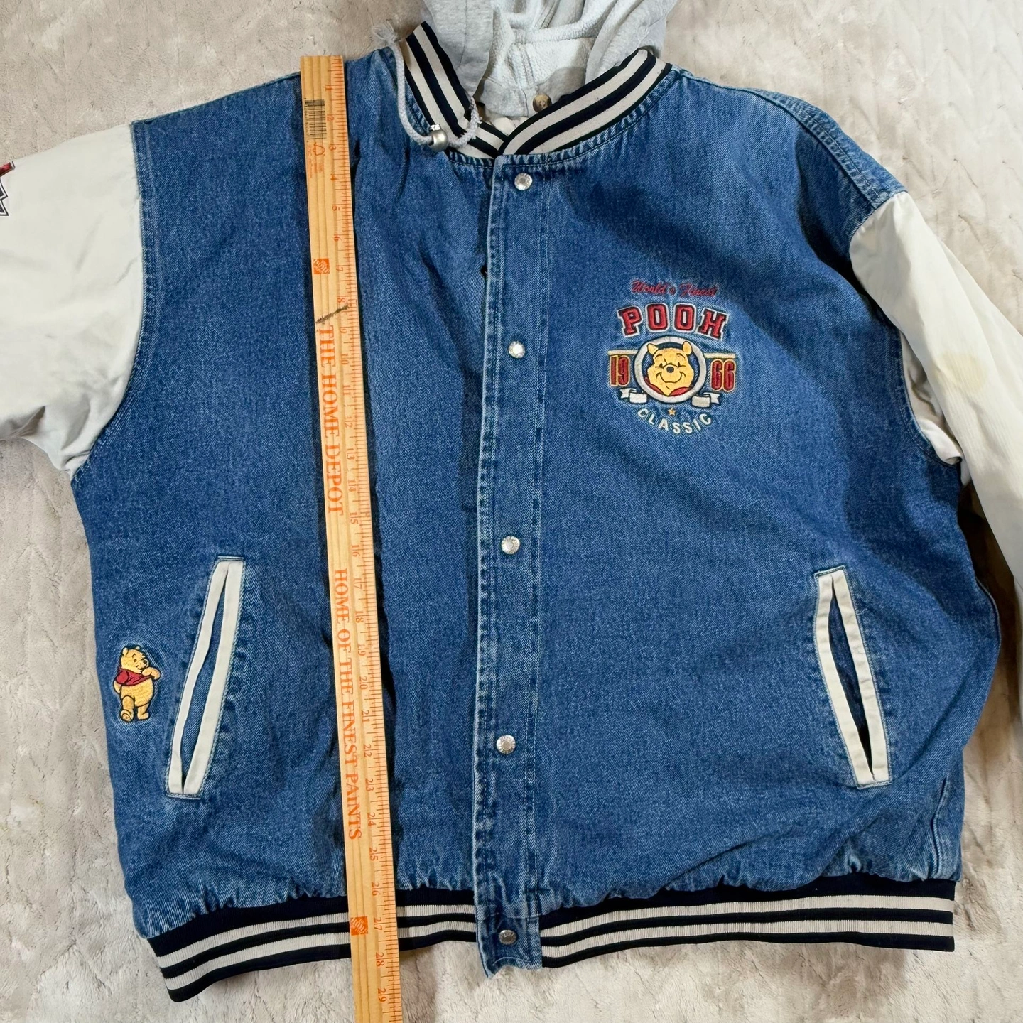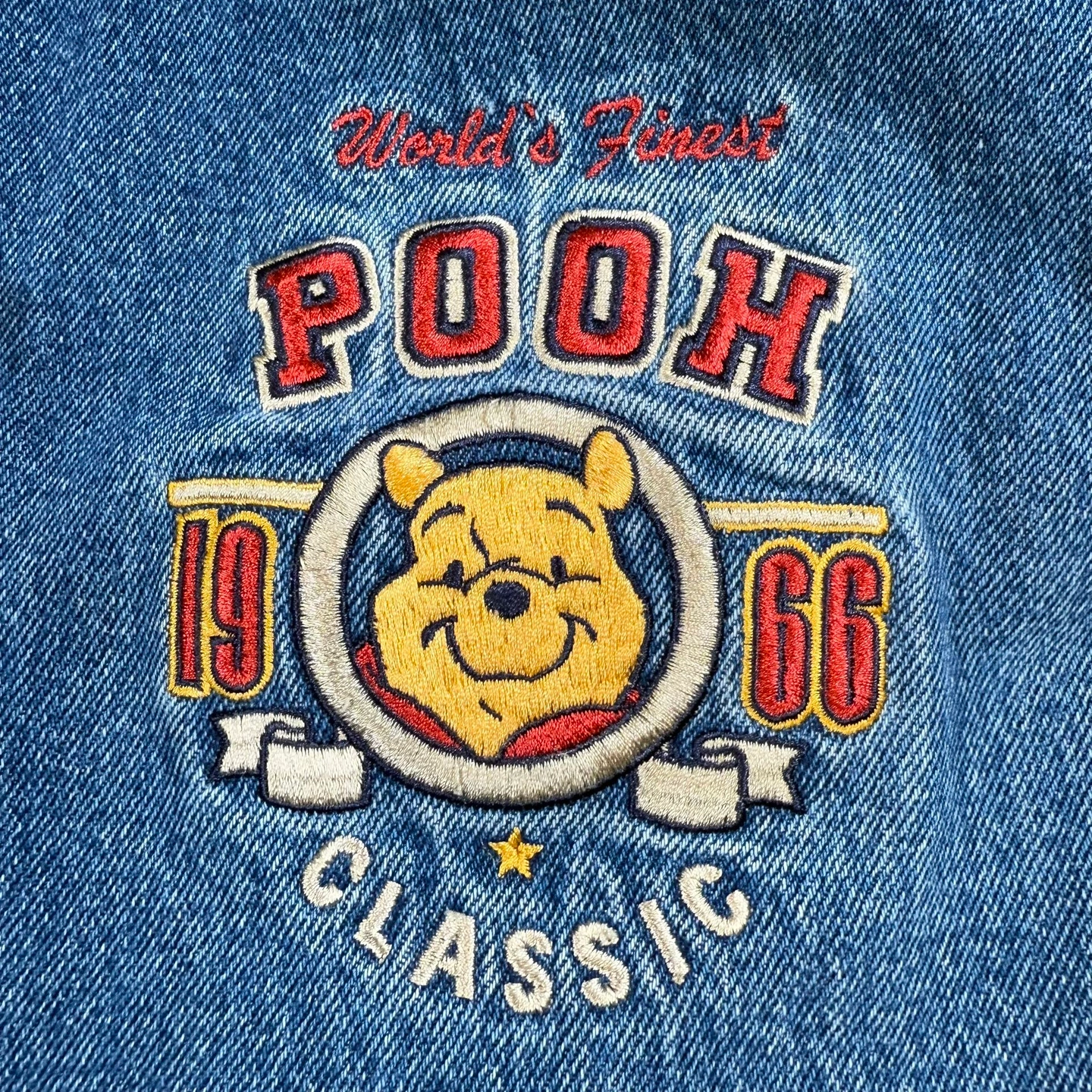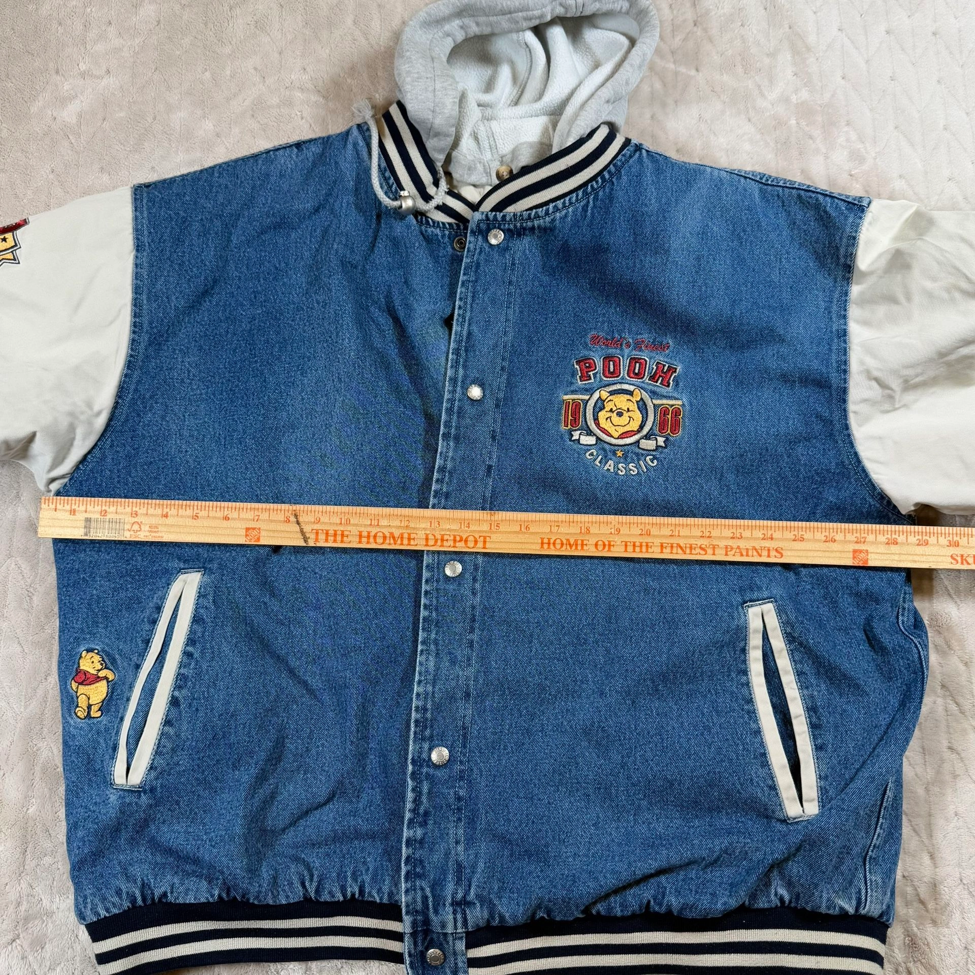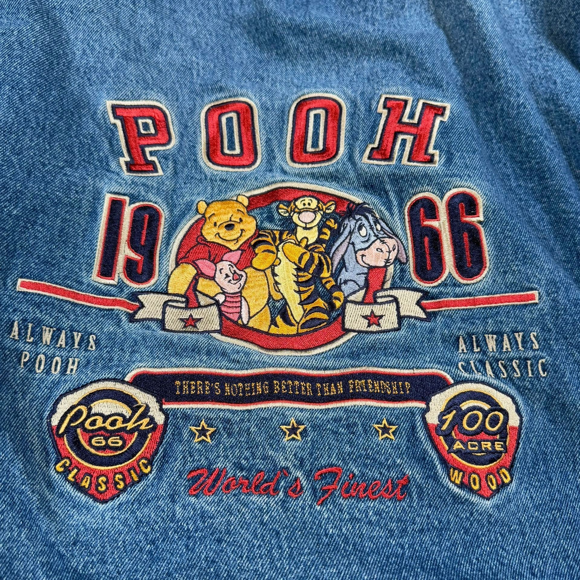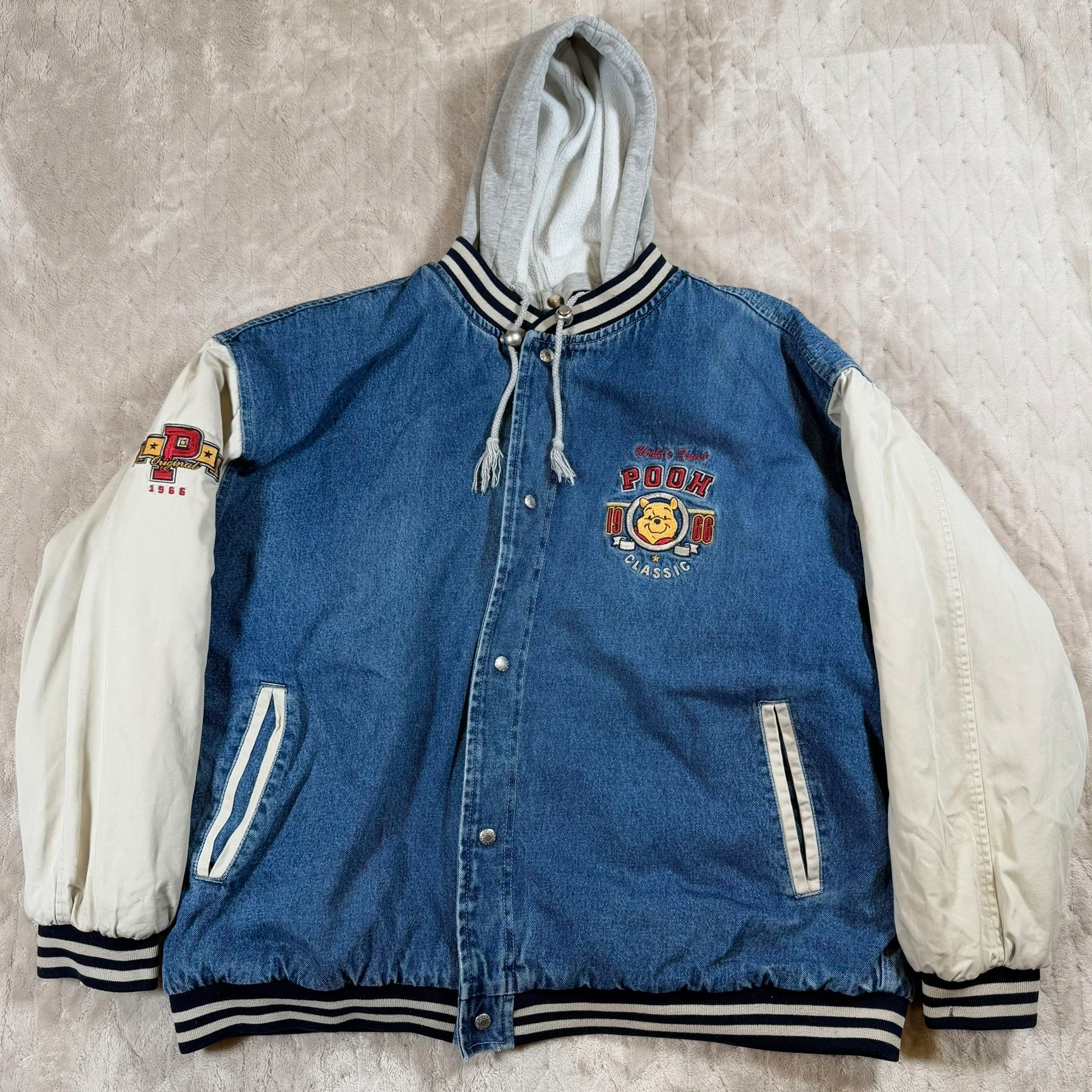 Vintage 90s Winnie The Pooh Disney Denim Varsity Bomber Jacket X