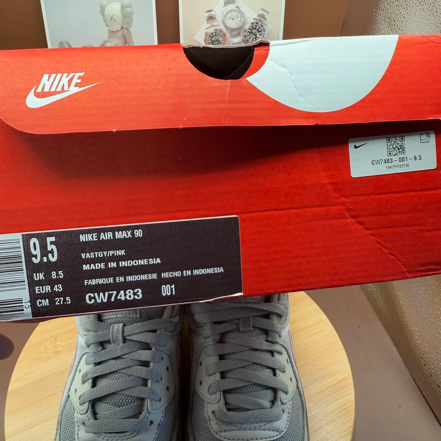 Nike Air Max 90 Grey Pnk String Men’s Size 9.5