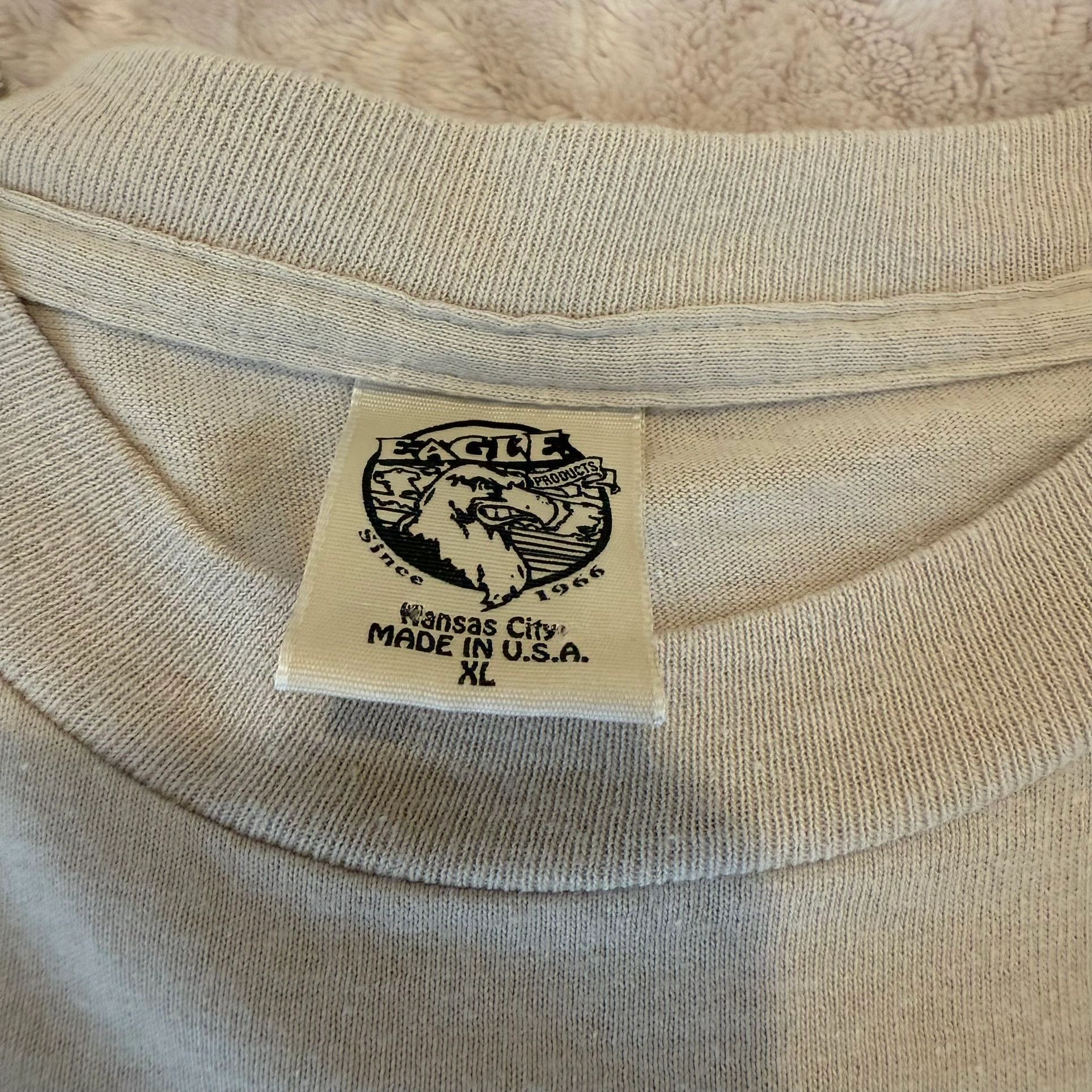 Buy & SellVintage Eagle Kansas City T-shirt Beige XL Single StitchVintage Eagle Kansas City T-shirt Beige XL Single Stitch$20In great preowned condition. Men’s Sz XL. Measurements: Length 30” Chest 23”WHERE TO MEETWalmart parking lotView MapSELLERNRSouth Setauket261 review0 chats·0 favorites·0 viewsSEND CHAT TO SELLERHi NR! I’m interested in your listing.Hi NR! I’m interested in your listing.Get the Karrot app to chatSign In to chat