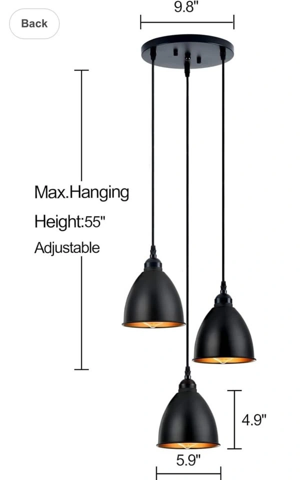 Installation: Three wires are the same length (Max Length:55"), you customize the hanging height for better lighting effect and desired look, it also flexibility hang at sloped ceiling. You can aline three metal shades in the same level or put 3 metal shades at 3 different levels, creating a cascading, flowing contemporary look.