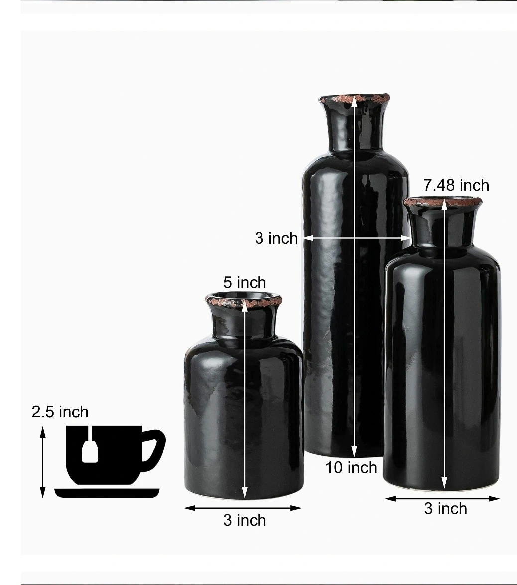 🥕Selling a set of black decorative vases. They would look great as a centerpiece or on a shelf! Perfect for adding a touch of elegance to any room. Small medium and large. Three different sizes