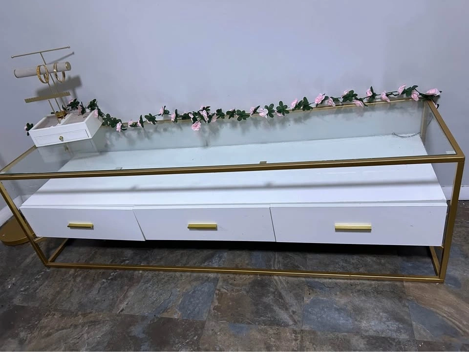 Wood 3 drawers stainless steel tv stand cabinet for leaving room wooden storage cabinet tv stand with LED light in the back works great, need to get rid of it ASAP!