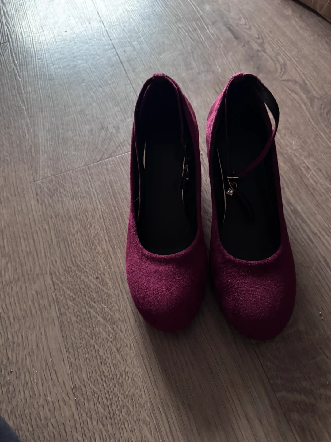 Here are some cute burgundy heels! They feature a rounded toe and an ankle strap. Perfect for dressing up an outfit!
