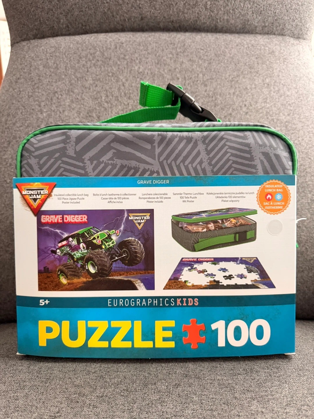 Selling a brand new Monster Jam Grave Digger puzzle that comes with a lunch bag! This is a 100-piece puzzle that also includes a poster. The lunch bag is insulated, making it perfect for keeping snacks cool. Recommended for ages 5+.