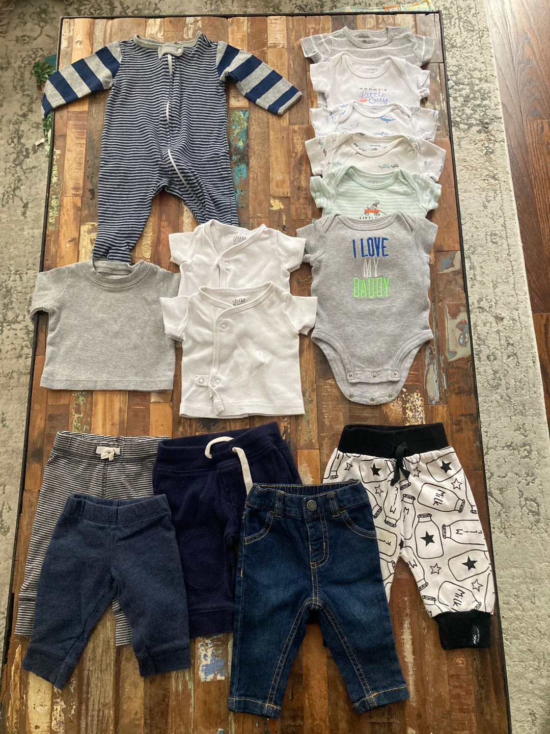 All in good condition. A couple minor stains. Items mostly from Carter’s. Price includes everything pictured. Cash only please.