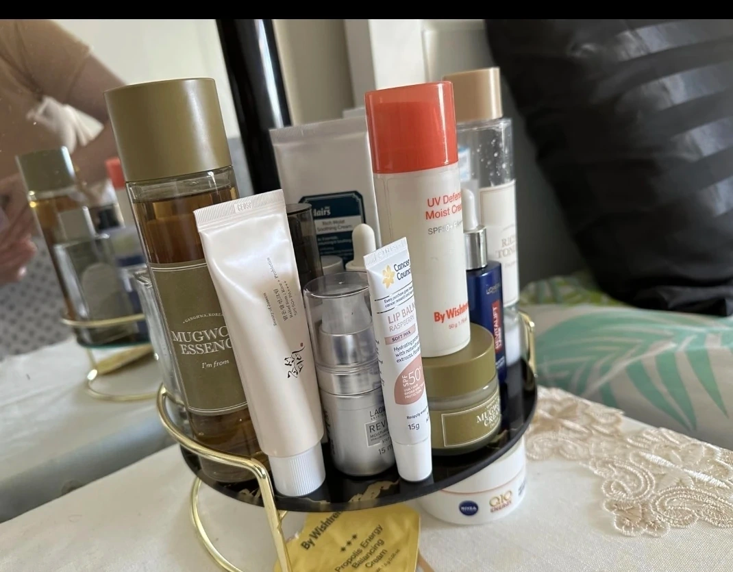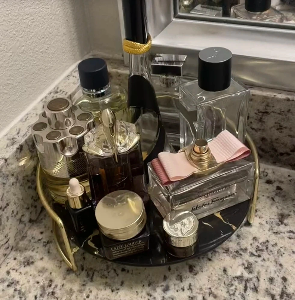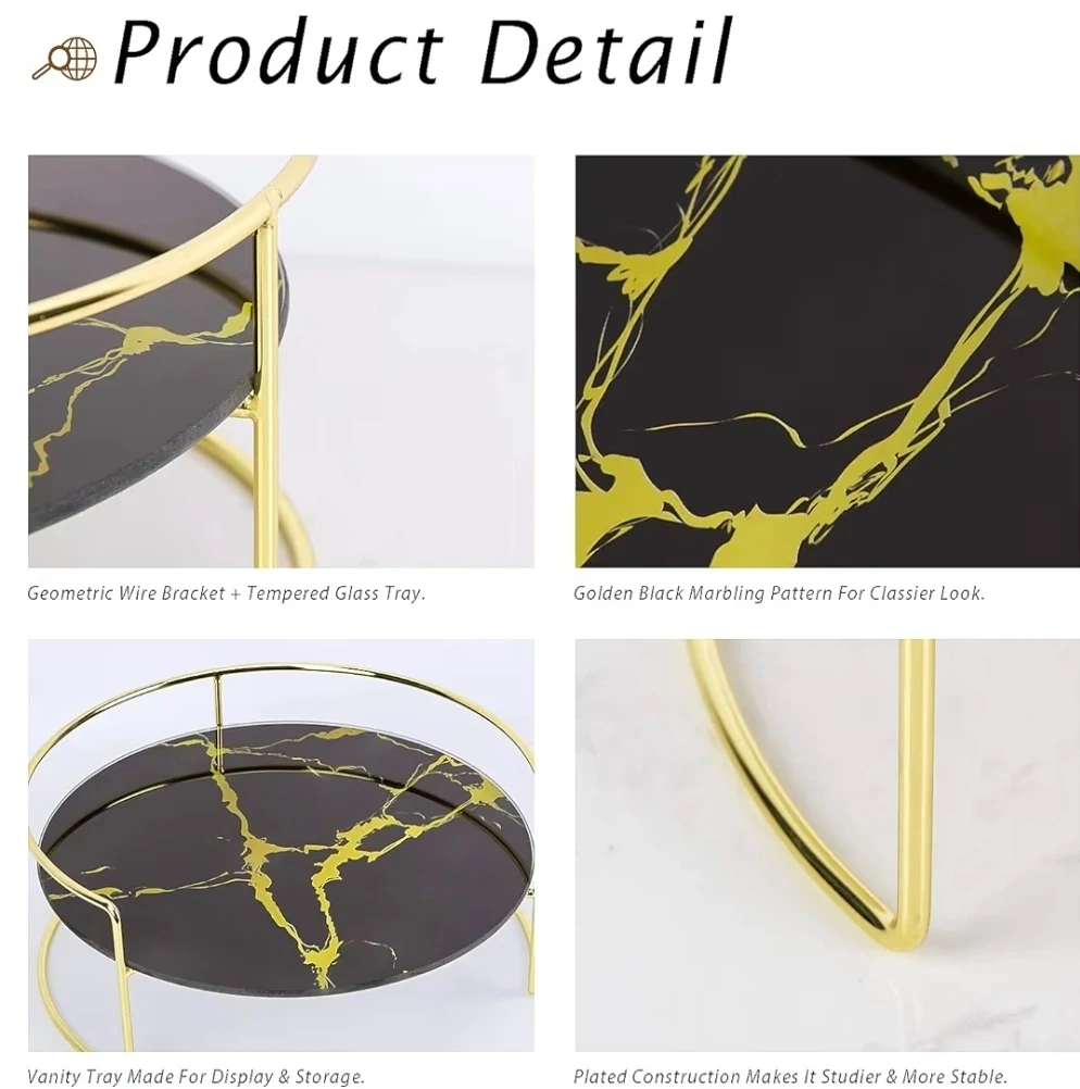 š„Decorative tempered glass vanity tray with Gold Stand
