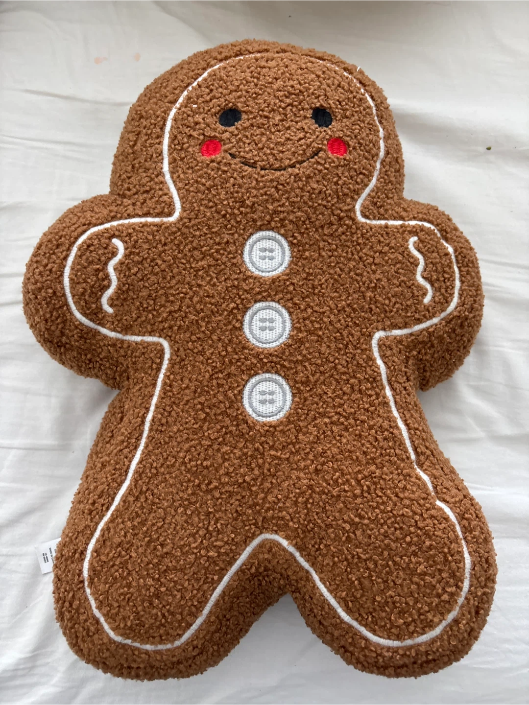 This is a cute gingerbread man plush pillow from Wonder Co. It's in great condition and ready to add some festive cheer to your home! The materials are 100% polyester fibres.