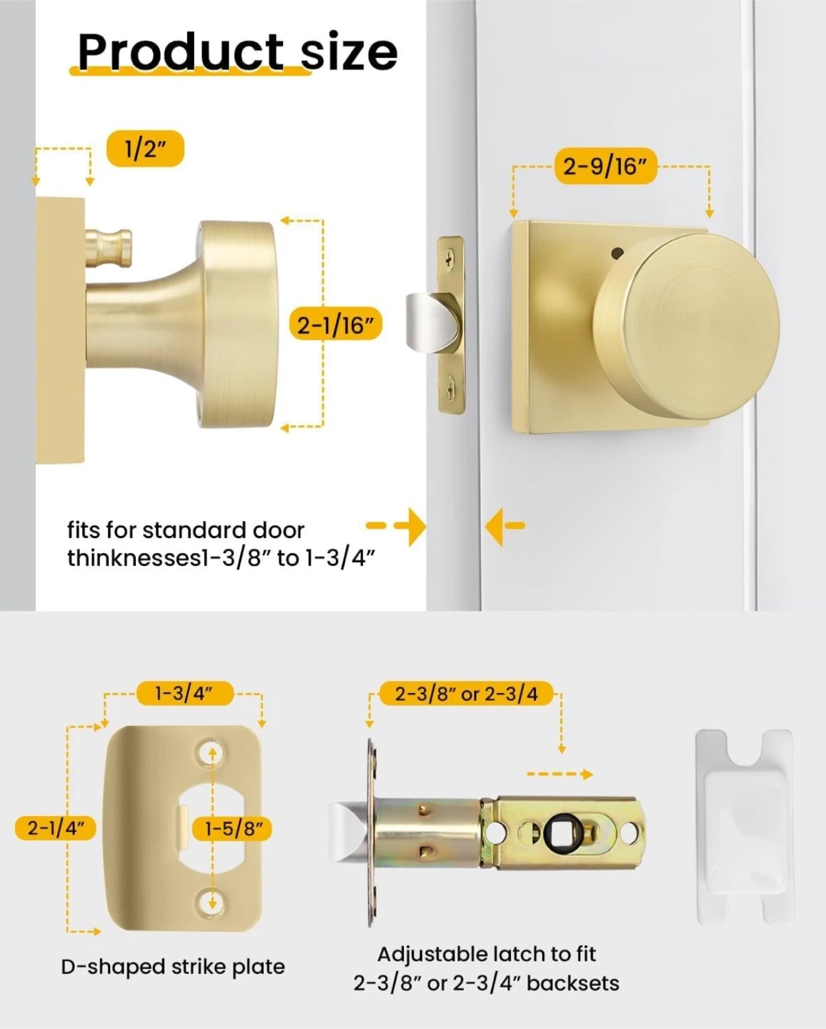 goldenwarm Privacy Gold Interior Door Knobs - Pack of 3 - BNIB