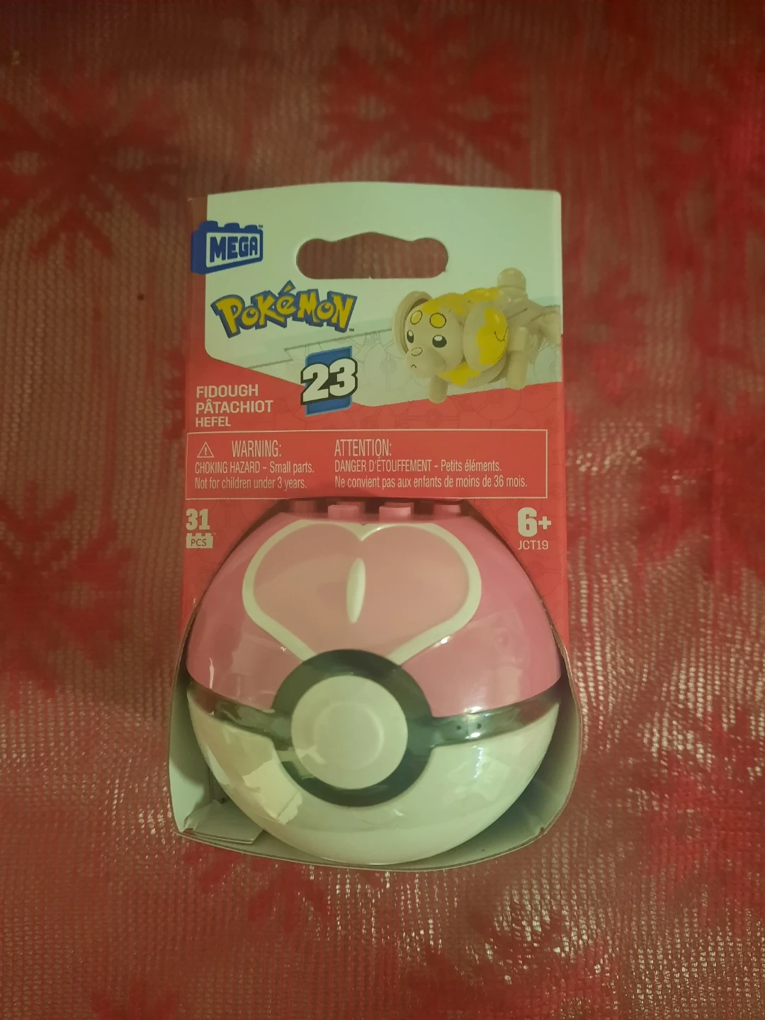 I'm selling a brand new Mega Pokémon Fidough Poké Ball building set! It's still sealed in the original packaging. This set includes 31 pieces and is suitable for ages 6 and up. It features a Fidough character and comes in a Poké Ball design