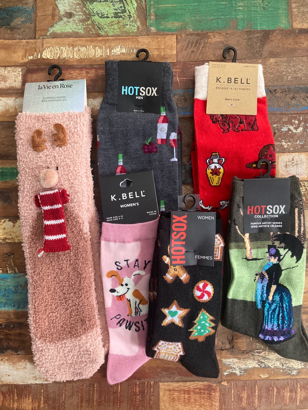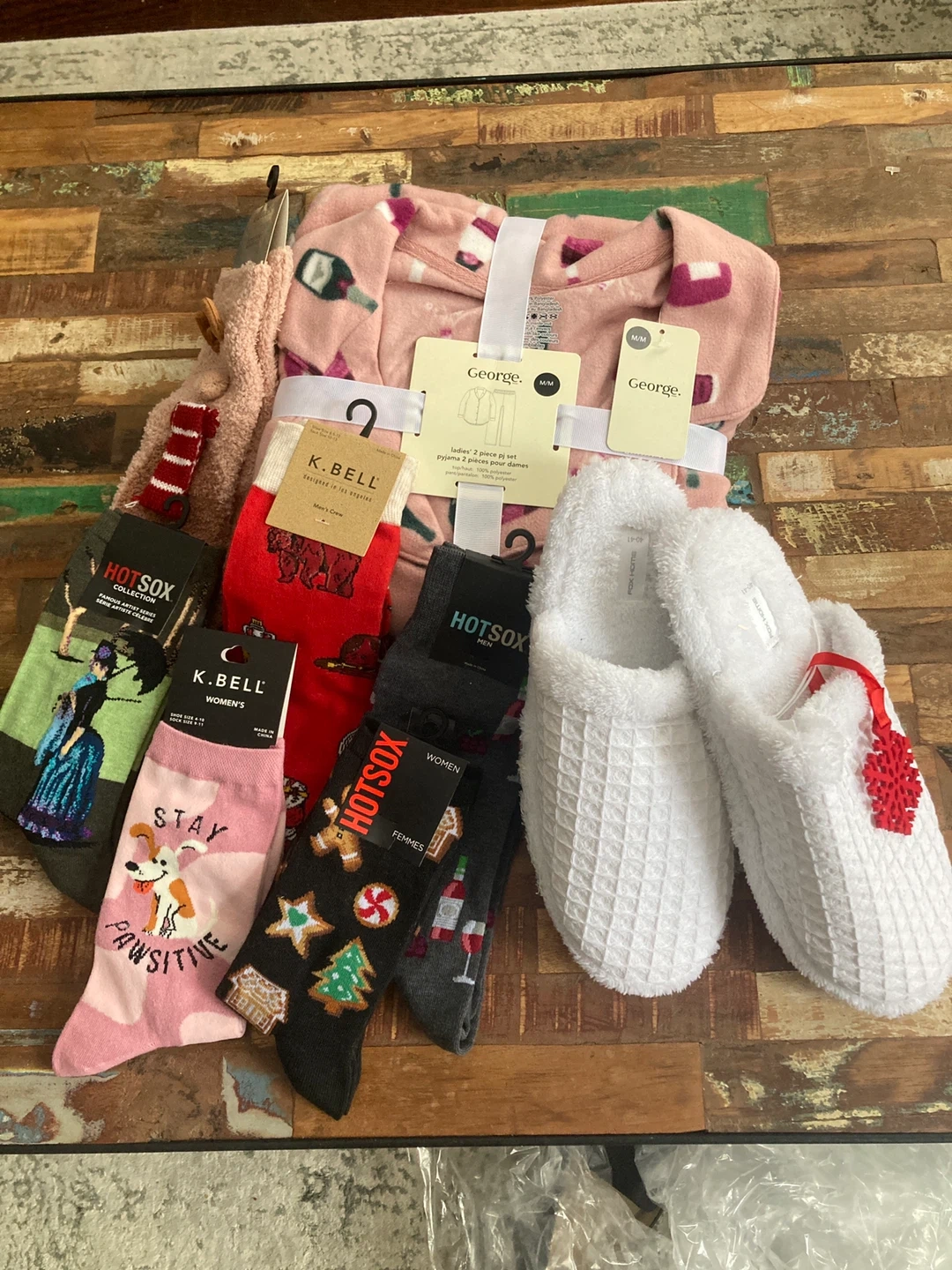 - 6 pairs of socks (4 ladies, 2 men’s)