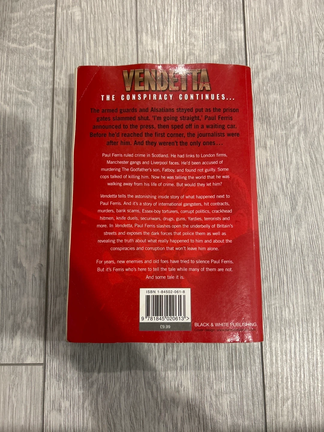 Selling a copy of "Vendetta" by Paul Ferris & Reg McKay. It tells the astonishing inside story of what happened next to Paul Ferris. It's a story of international gangsters, hit contracts, murders, bank scams, Essex-boy torturers, corrupt politics, crackhead hitmen, knife duels, securiwars, drugs, guns, Yardies, terrorists and more. A great read for crime book fans!