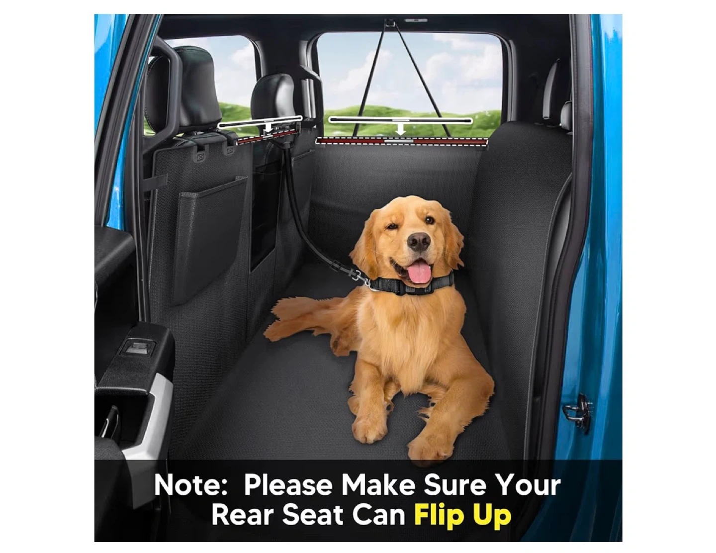 Keep your furry friend safe and comfortable during car rides with this Automim truck dog hammock, designed for trucks with flip-up seats, brand new. This crossbar design seat cover offers back seat protection and includes a dog leash.