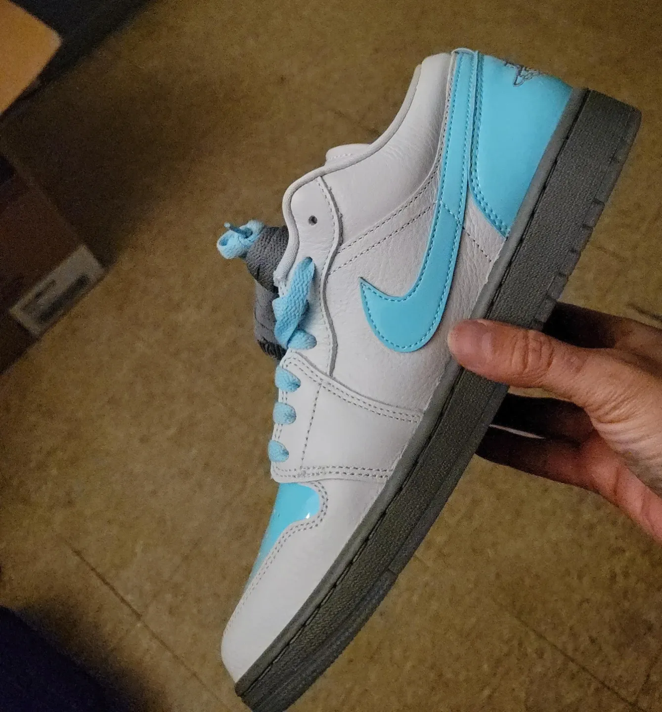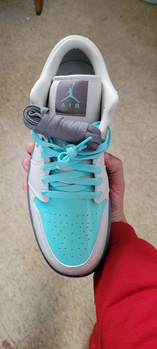 Selling a pair of Nike Air Jordan 1 Low sneakers in a cool powder blue color. These shoes are in good condition and ready for a new owner! The iconic design and comfortable fit make them a great addition to any sneaker collection. New without box extra laces