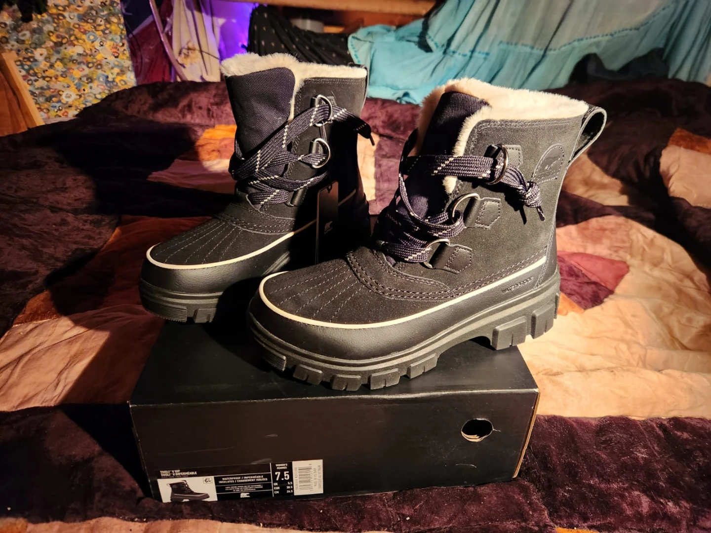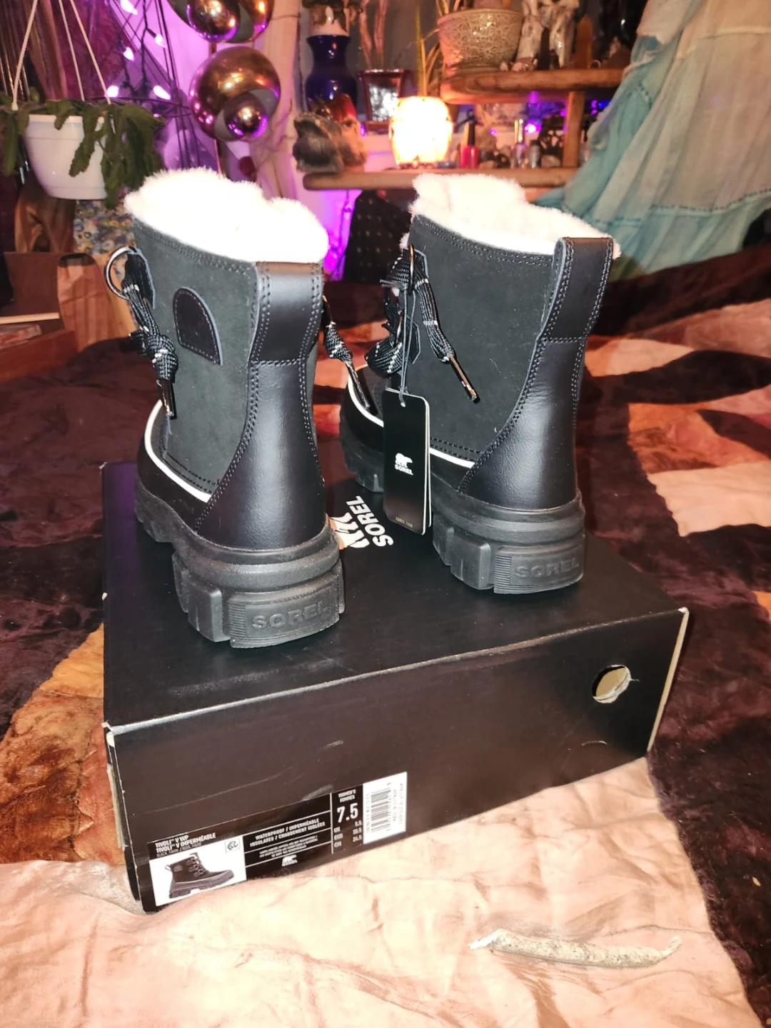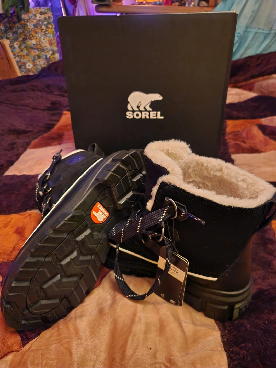 These Sorel Snow Angel boots are brand new and never been worn! and come with the original box! They are a size 7.5 and perfect for keeping your feet warm and dry during the winter months. The boots feature a stylish design with a faux fur trim and a durable rubber sole. These boots are ready for the snow!