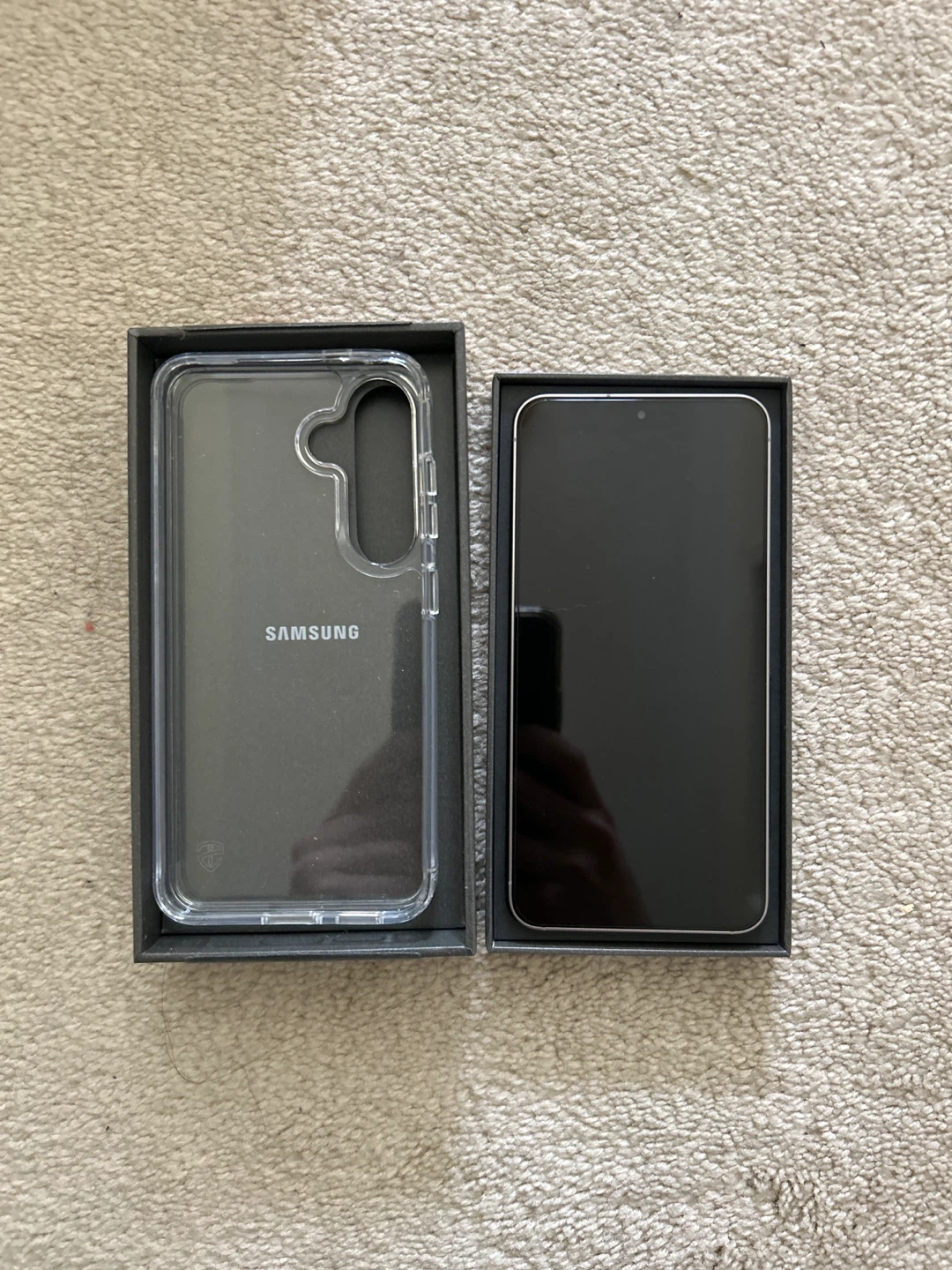 Selling a brand new Samsung Galaxy S25! It comes with the box, a clear Samsung phone case, and with a screen protector already on. Never been used. Comes with cable in the box.