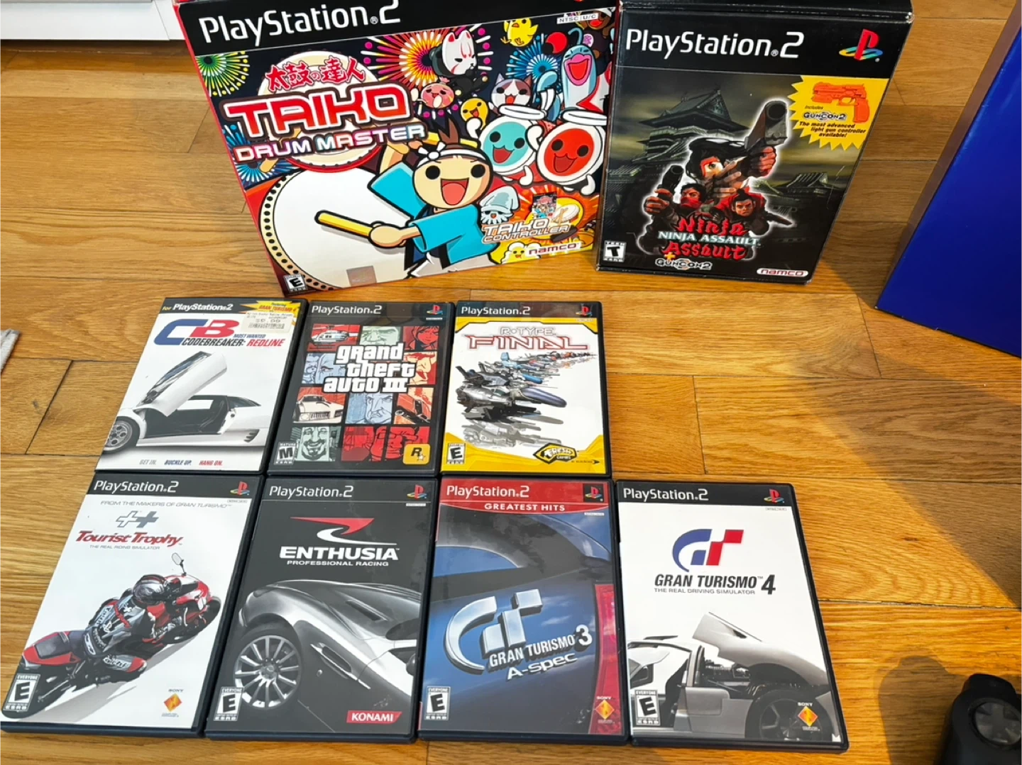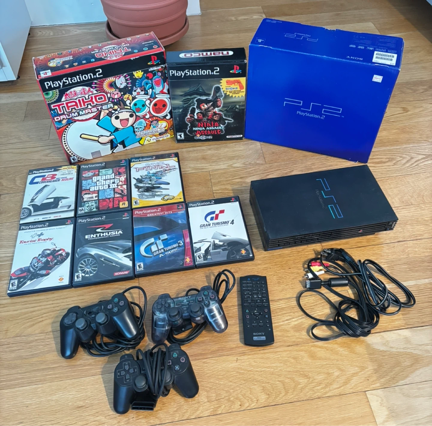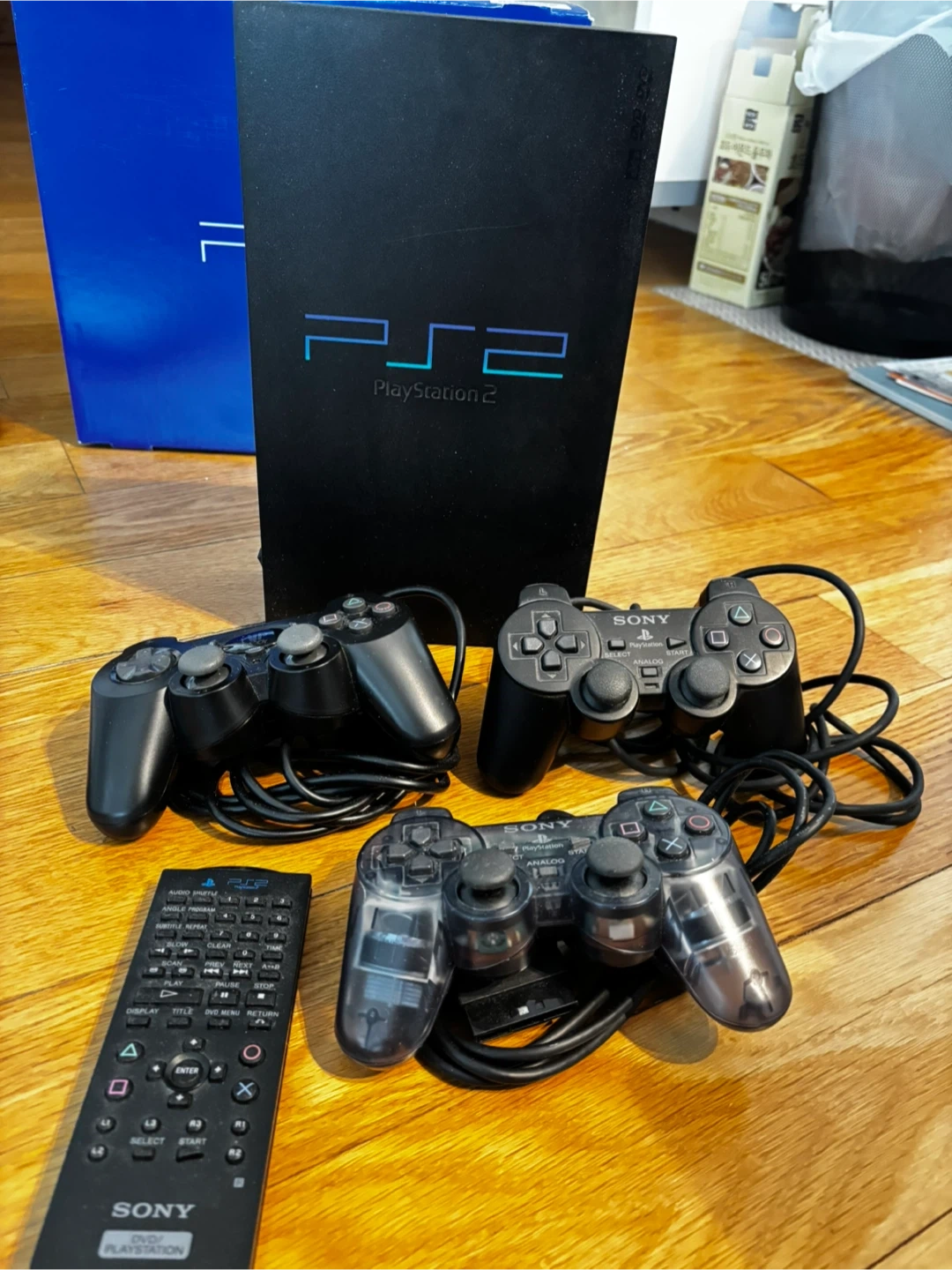 Selling a 2002 PlayStation 2 console with a bunch of extras! It comes with the original box, three controllers, and a remote. Plus, there are several games included: