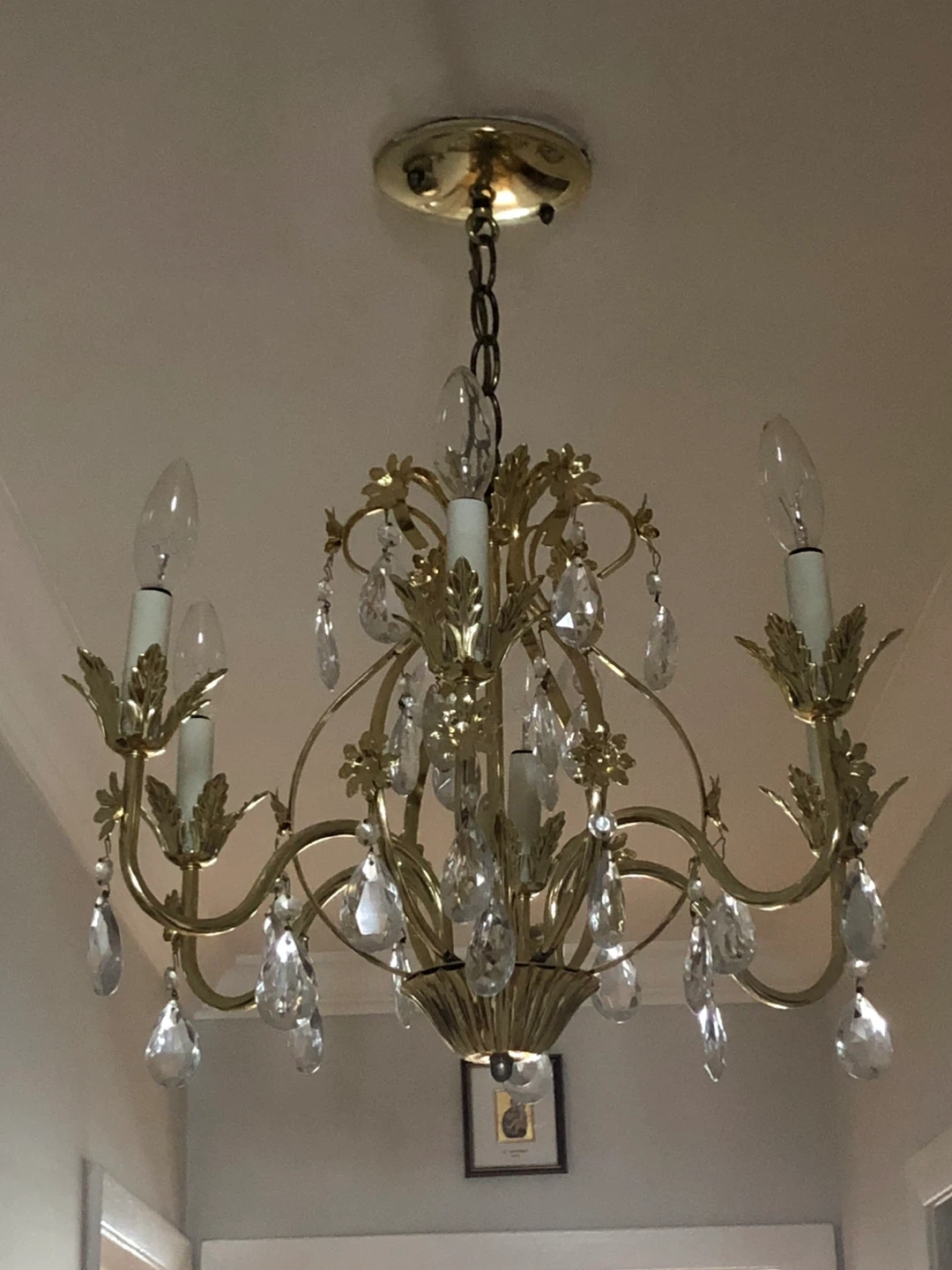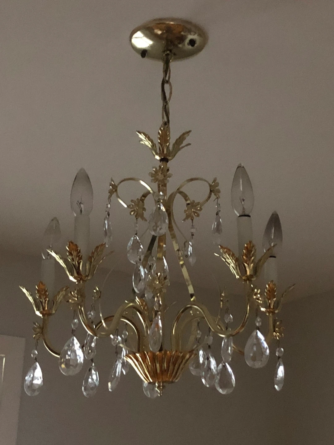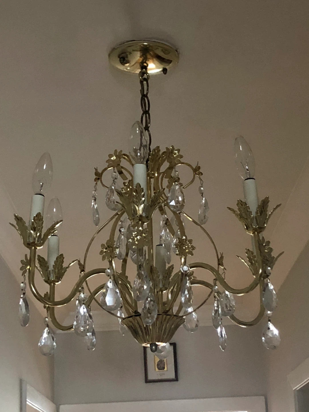 Selling a beautiful gold chandelier with elegant crystal accents. It's in great condition and would add a touch of glamour to any room! The chandelier features a classic design with ornate details, perfect for creating a warm and inviting atmosphere in your home.