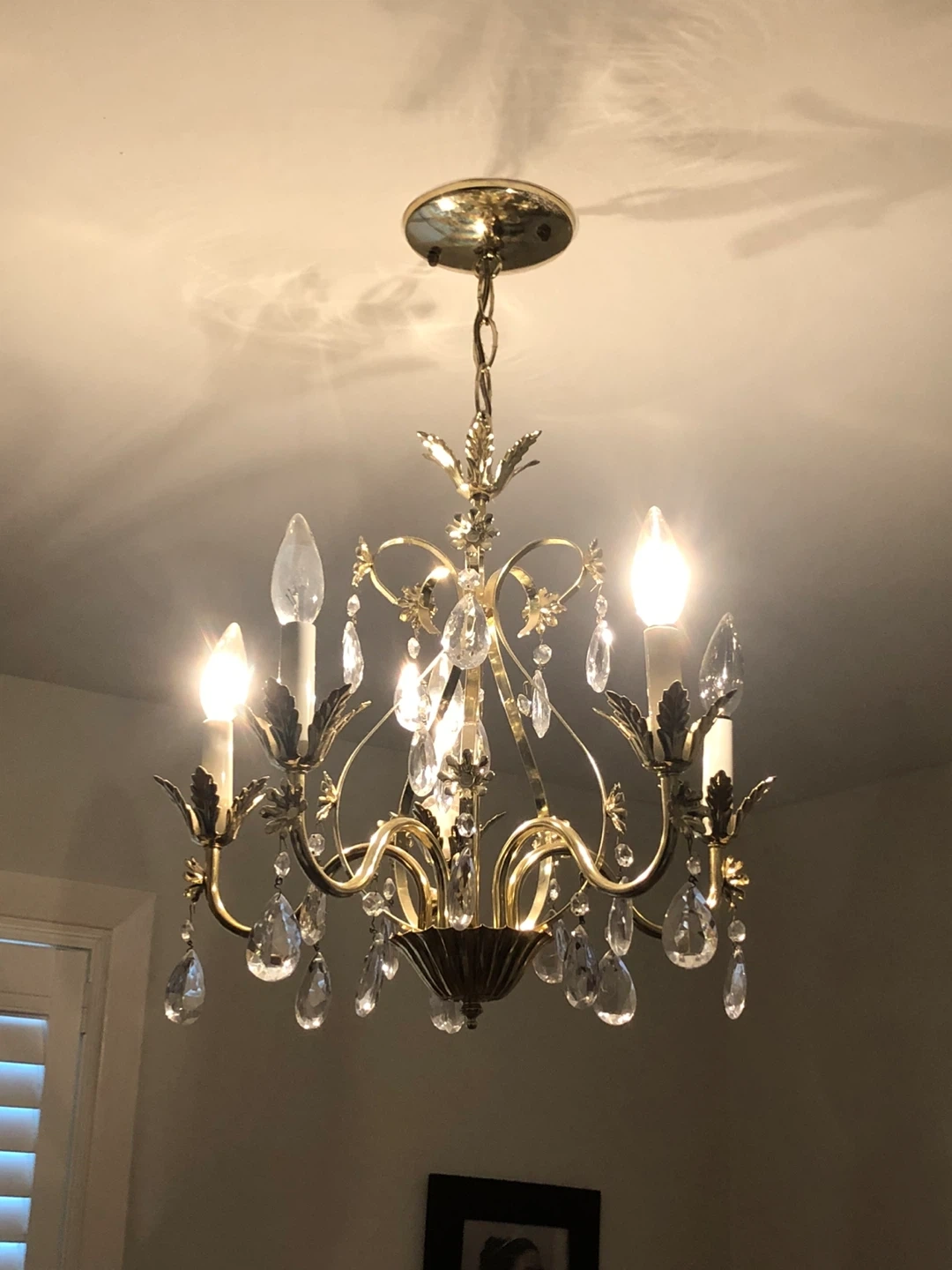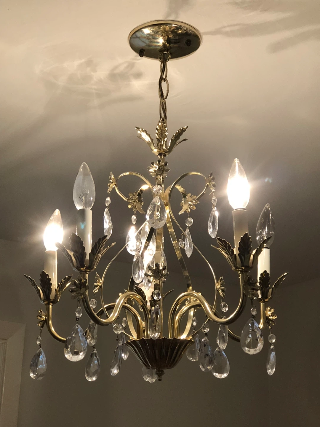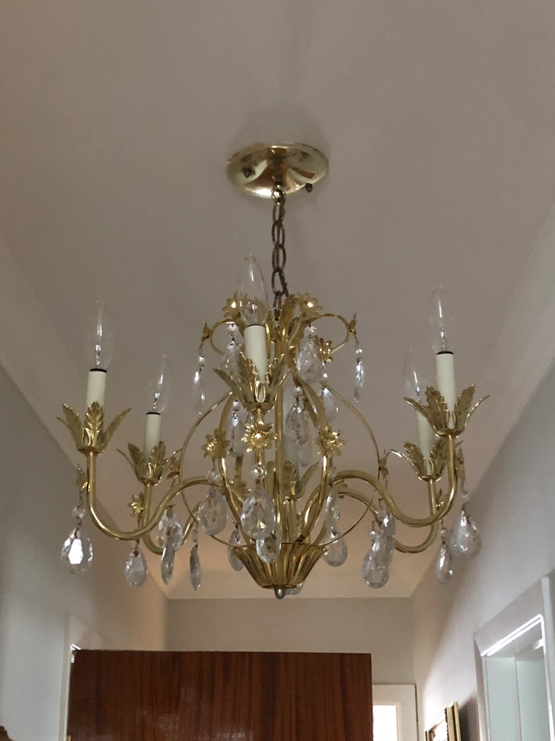 Selling a beautiful gold chandelier with elegant crystal accents. It's in great condition and would add a touch of glamour to any room! The chandelier features a classic design with ornate details, perfect for creating a warm and inviting atmosphere in your home.