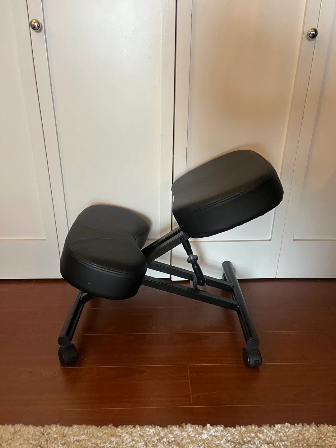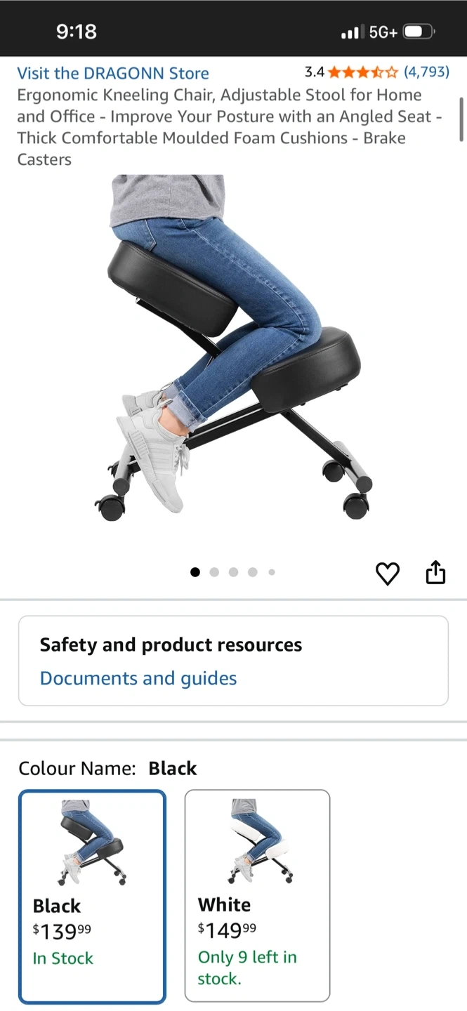 Selling a DRAGONN ergonomic kneeling chair in black. It's designed to improve your posture with an angled seat and thick comfortable moulded foam cushions. It also has brake casters for easy movement and stability. Originally bought for $139.99!